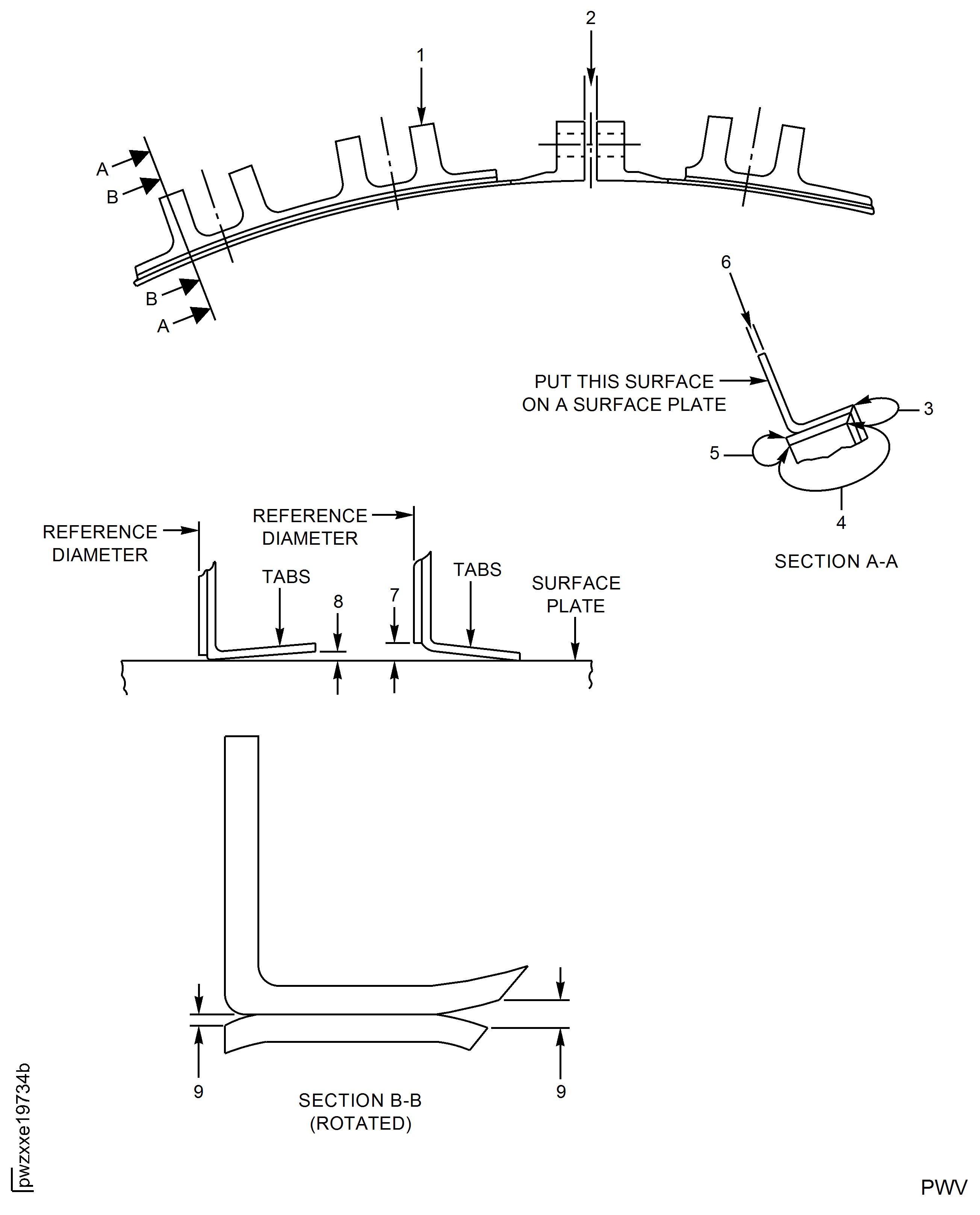 SUBTASK 72-44-40-220-059 Examine the Stage 1 HPT Outer Seal Assembly (01-010) for Wear, Thinning and Bending on the Tabs