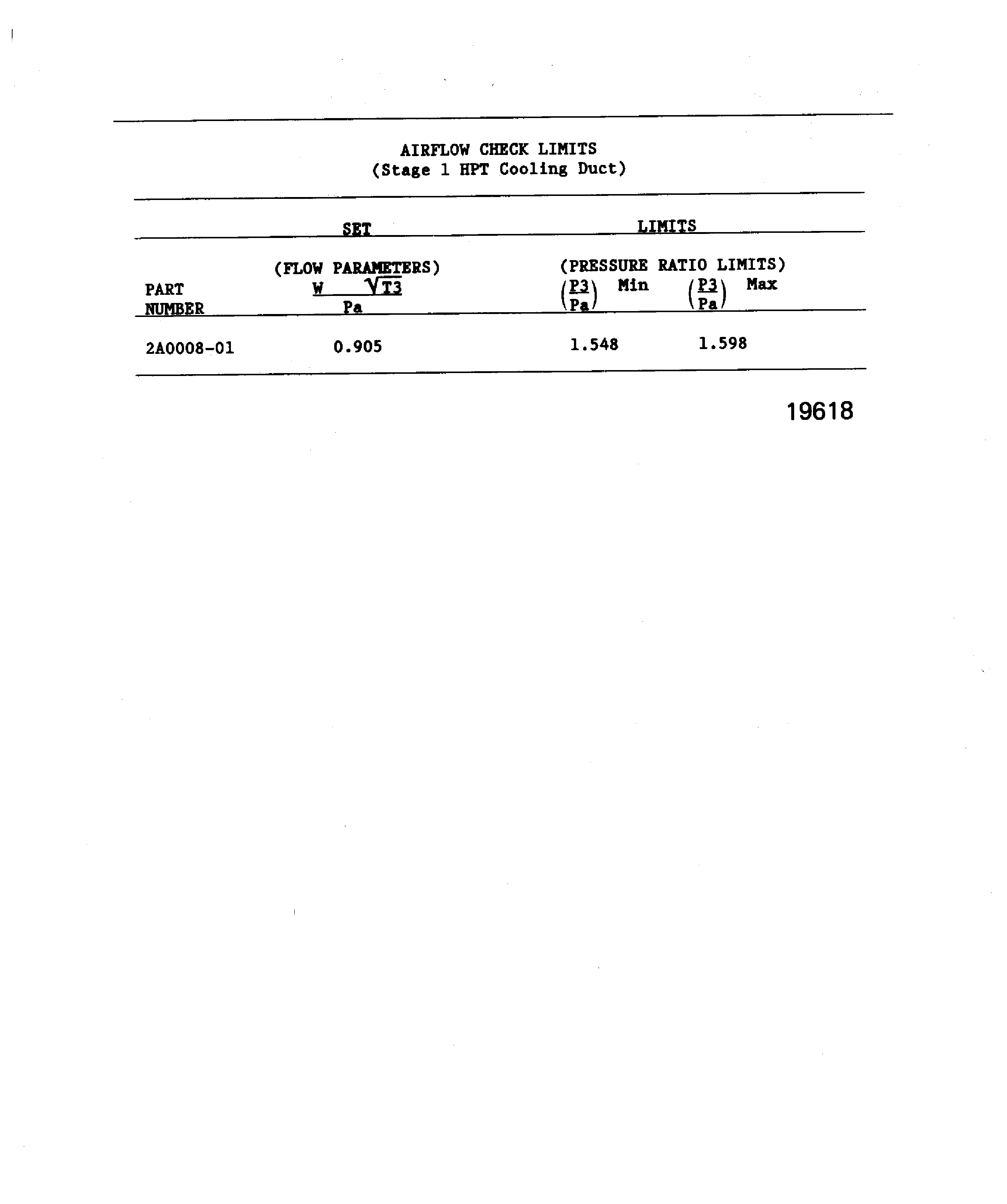 Stage 1 HPT Cooling Duct Airflow Check Limits
