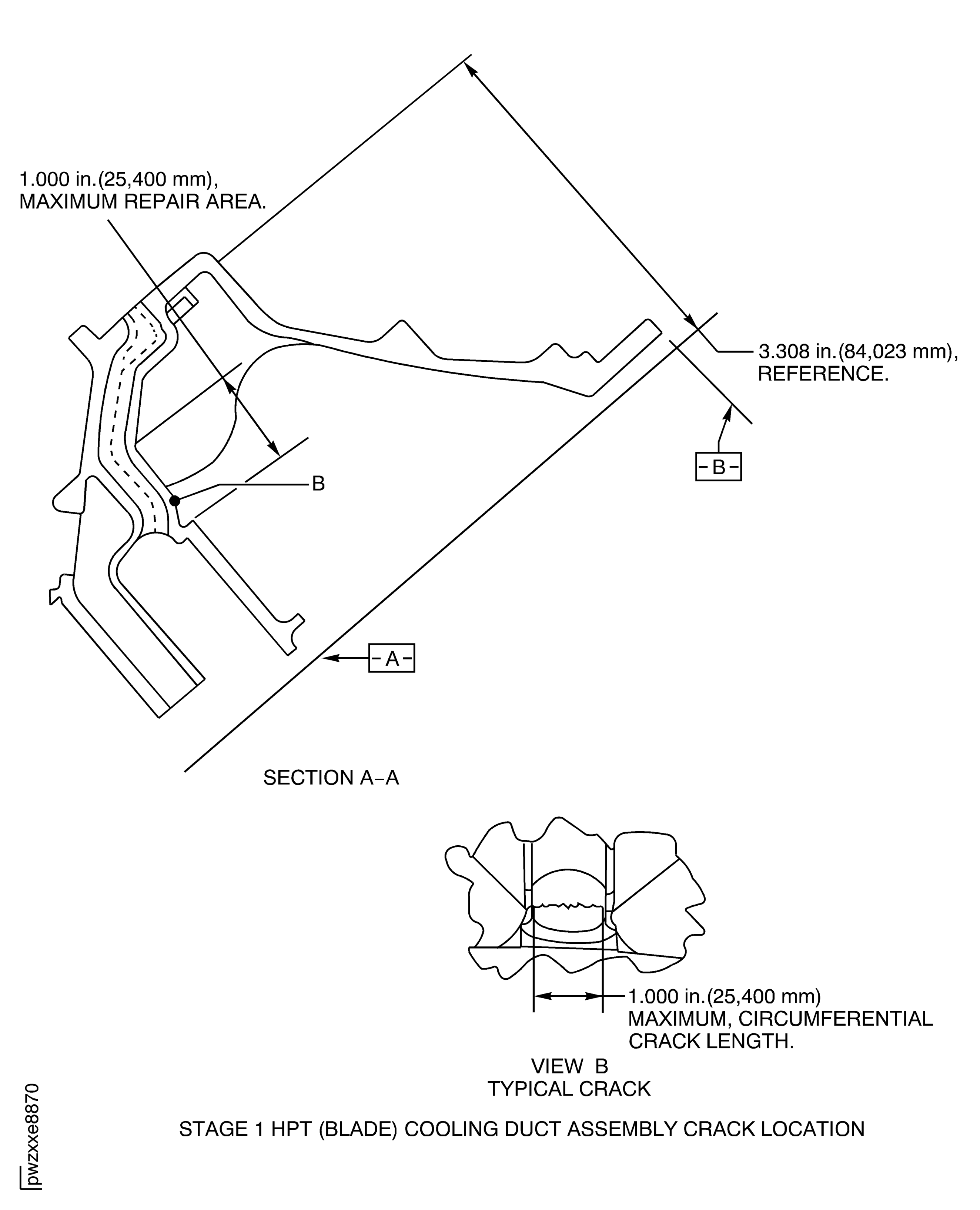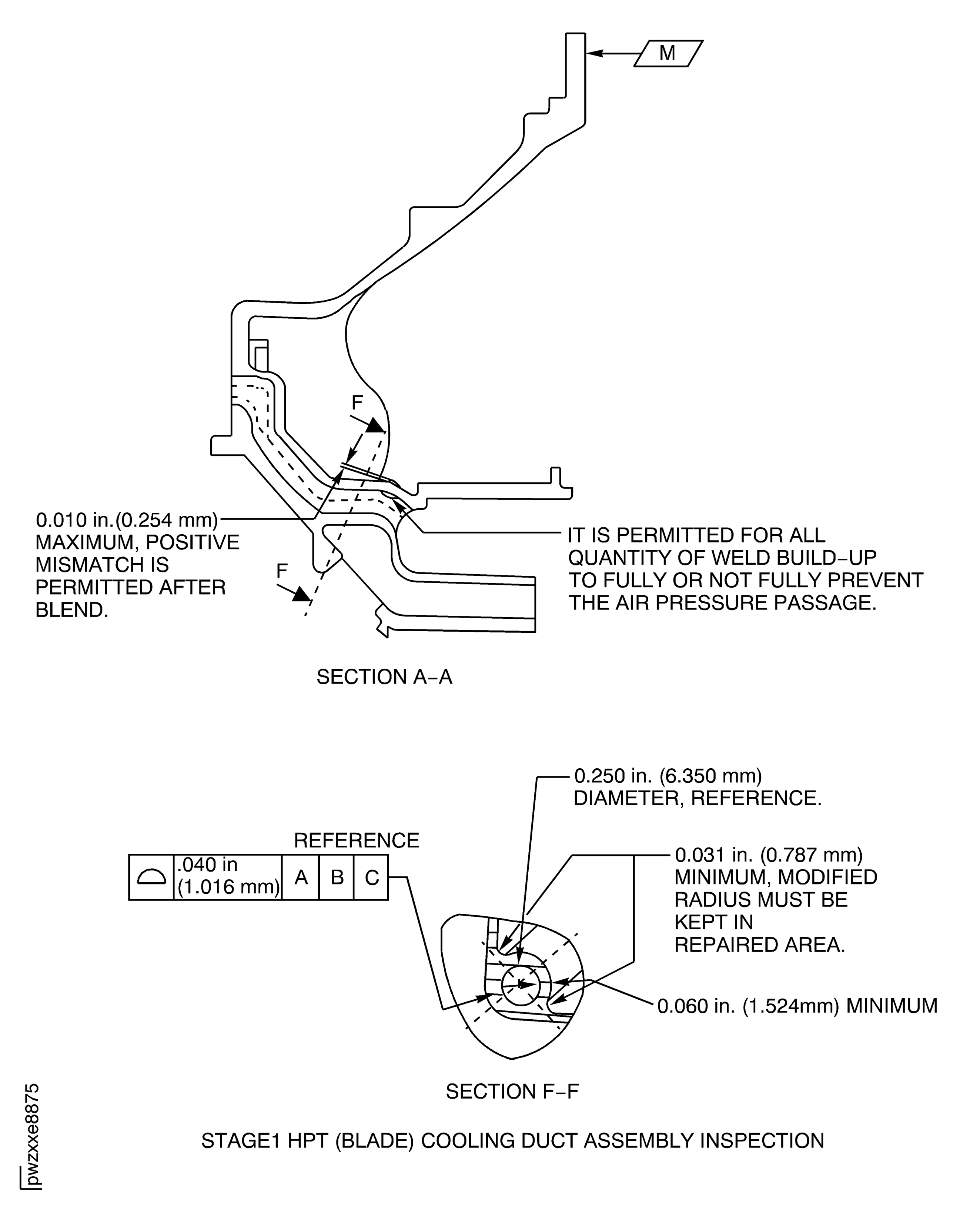 It is not necessary to blend the inner diameter of the air pressure passage since the rear opening of the passage will be plug welded.Blend the repaired area. A mismatch of +0.010 in. (+0.25 mm) is permitted.