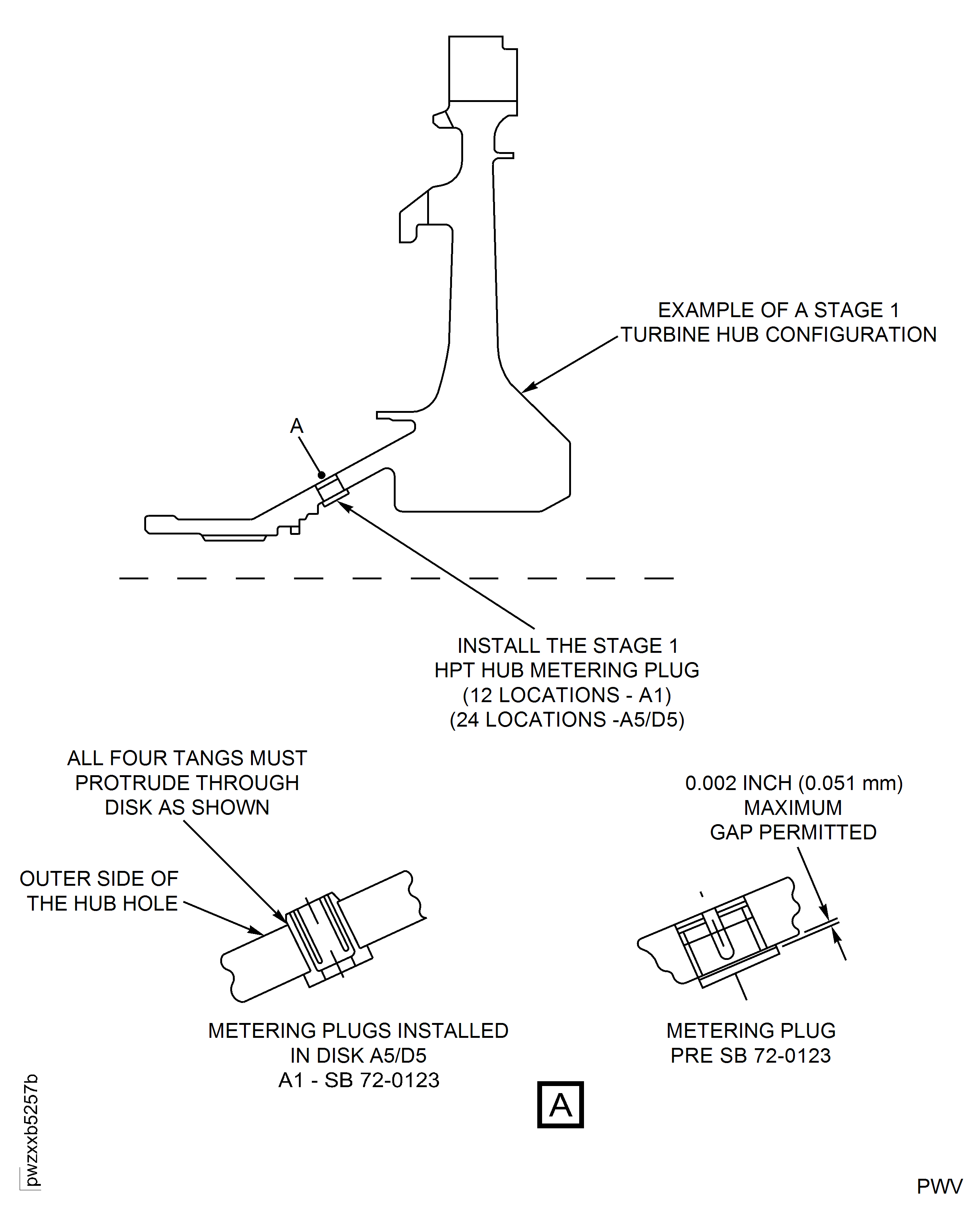 Remove and discard all of the stage 1 HPT metering plugs HPT Stage 1 Hub (72-45-11, 01-040).