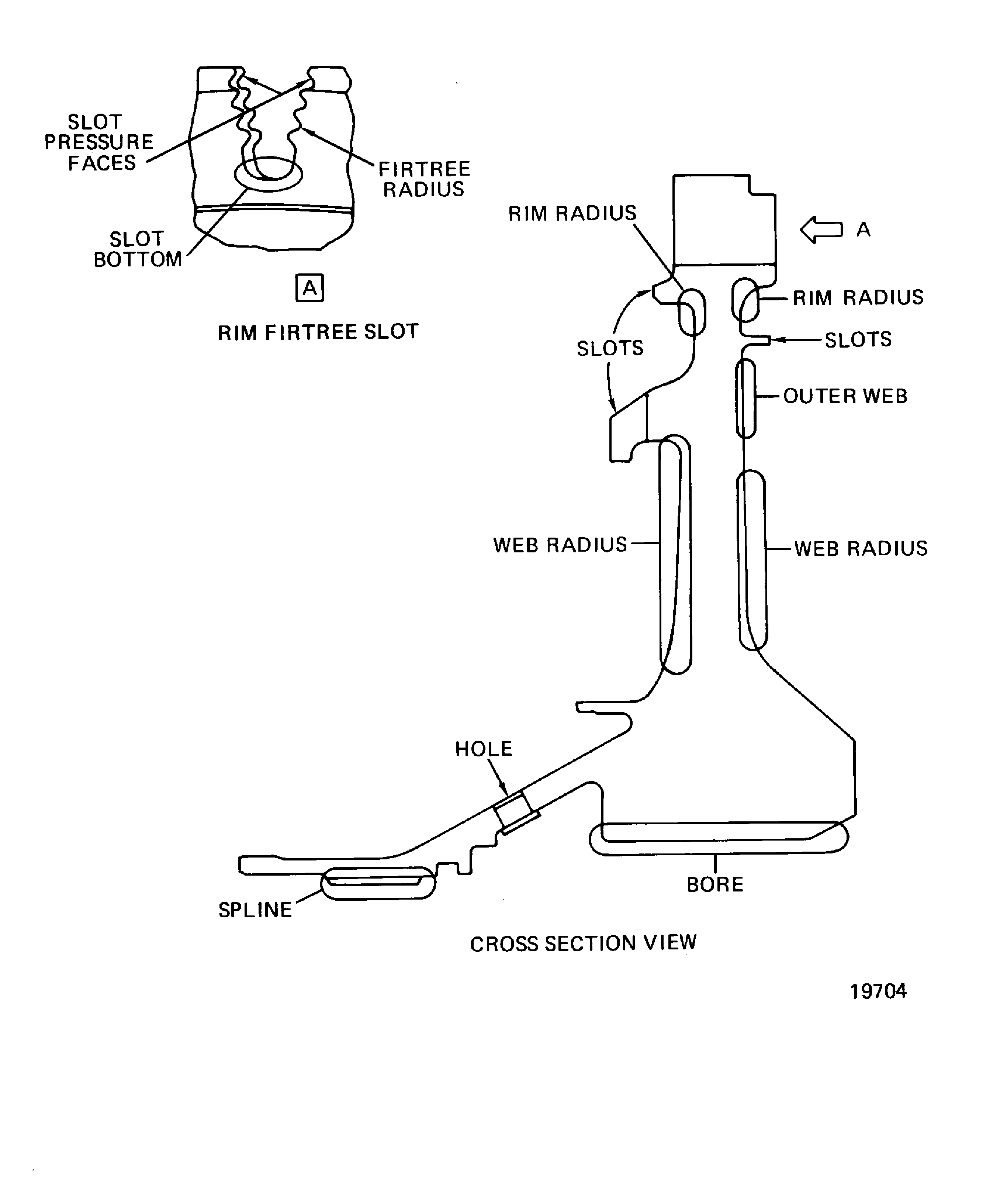 Figure: Stage 1 Turbine Hub Inspection Locations