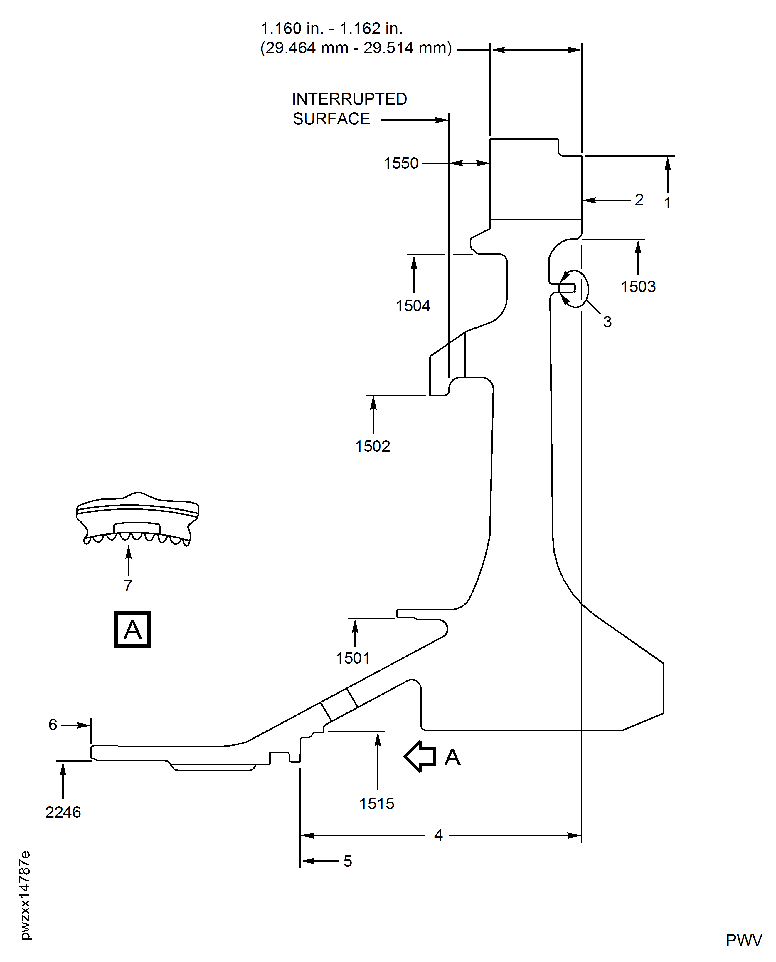 Examine the turbine hub for the spline tooth wear at Location 7. Use the two pins 0.090 in. (2.286 mm) in diameter.
