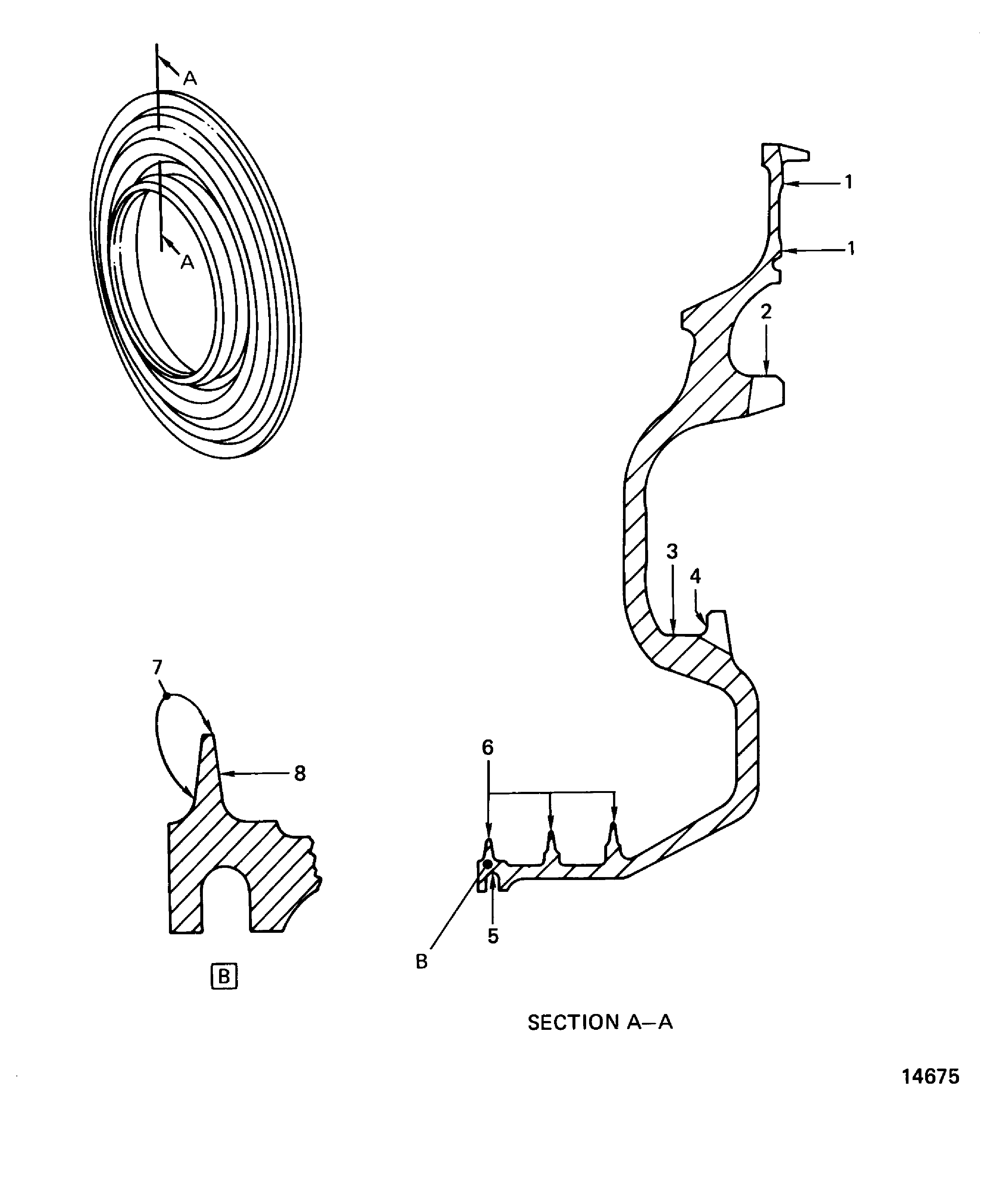 Examine the air seal at Location 1502, for the inside diameter of the lock lug.