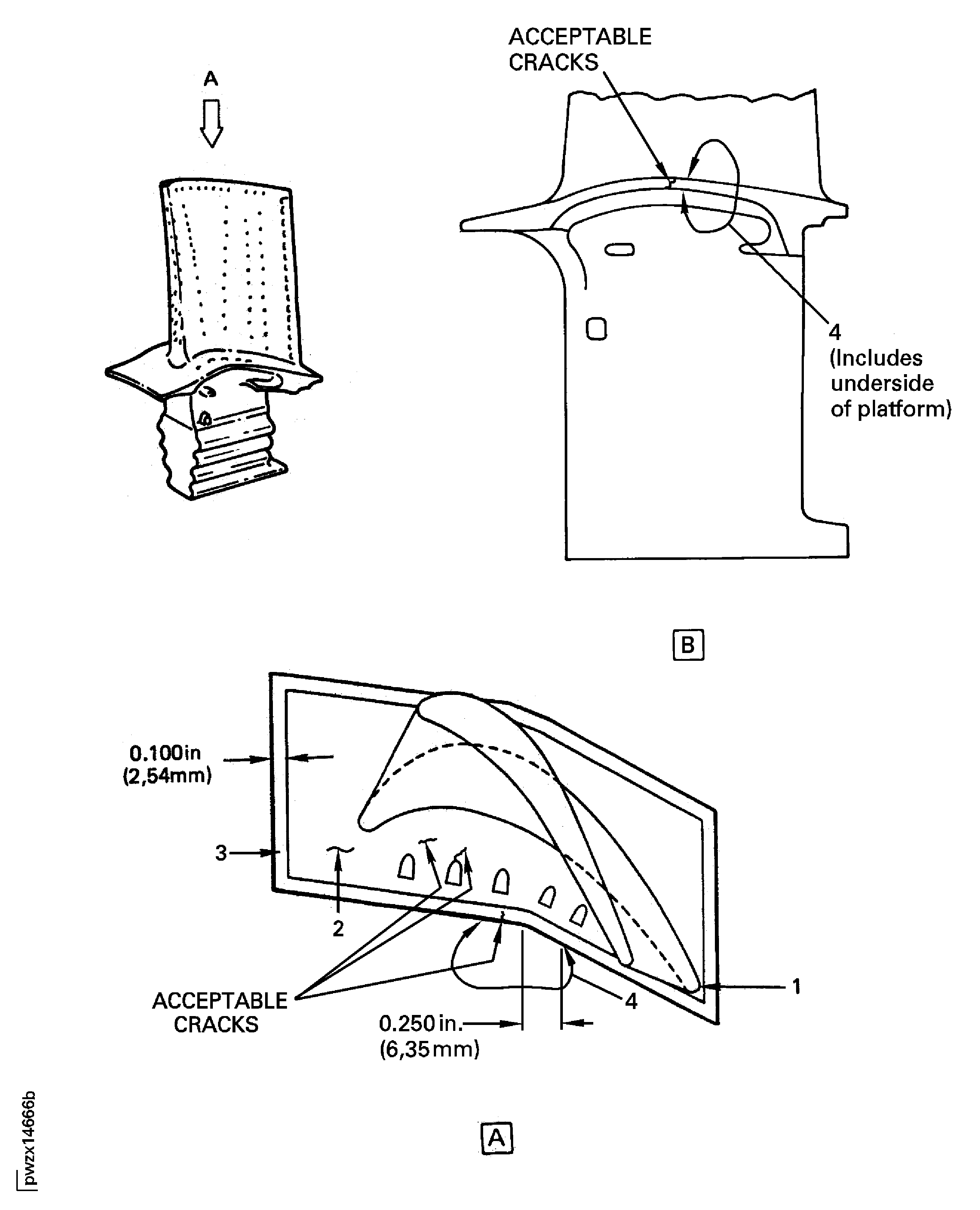 The procedure for those parts which must have a crack test is given in SUBTASK 72-45-14-230-052. Do the test for cracks only if the visual examination of the blade is unsatisfactory.