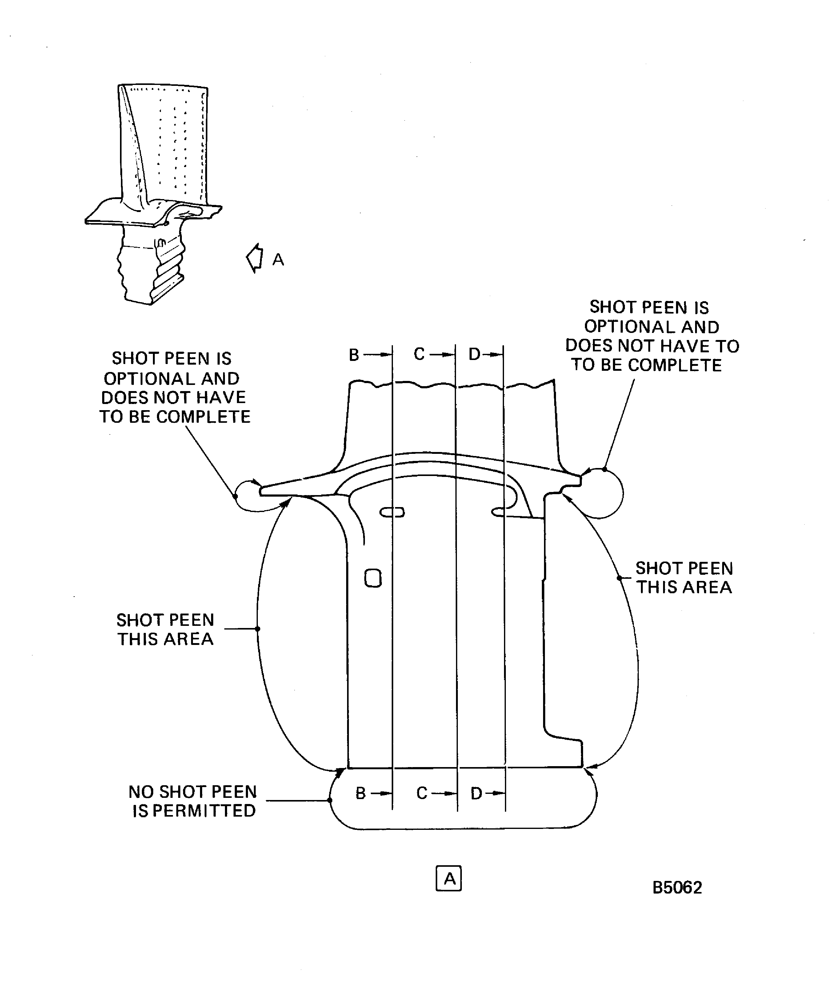 Shot peen the blade root area by the SPM TASK 70-38-13-380-501. Refer to Figure.