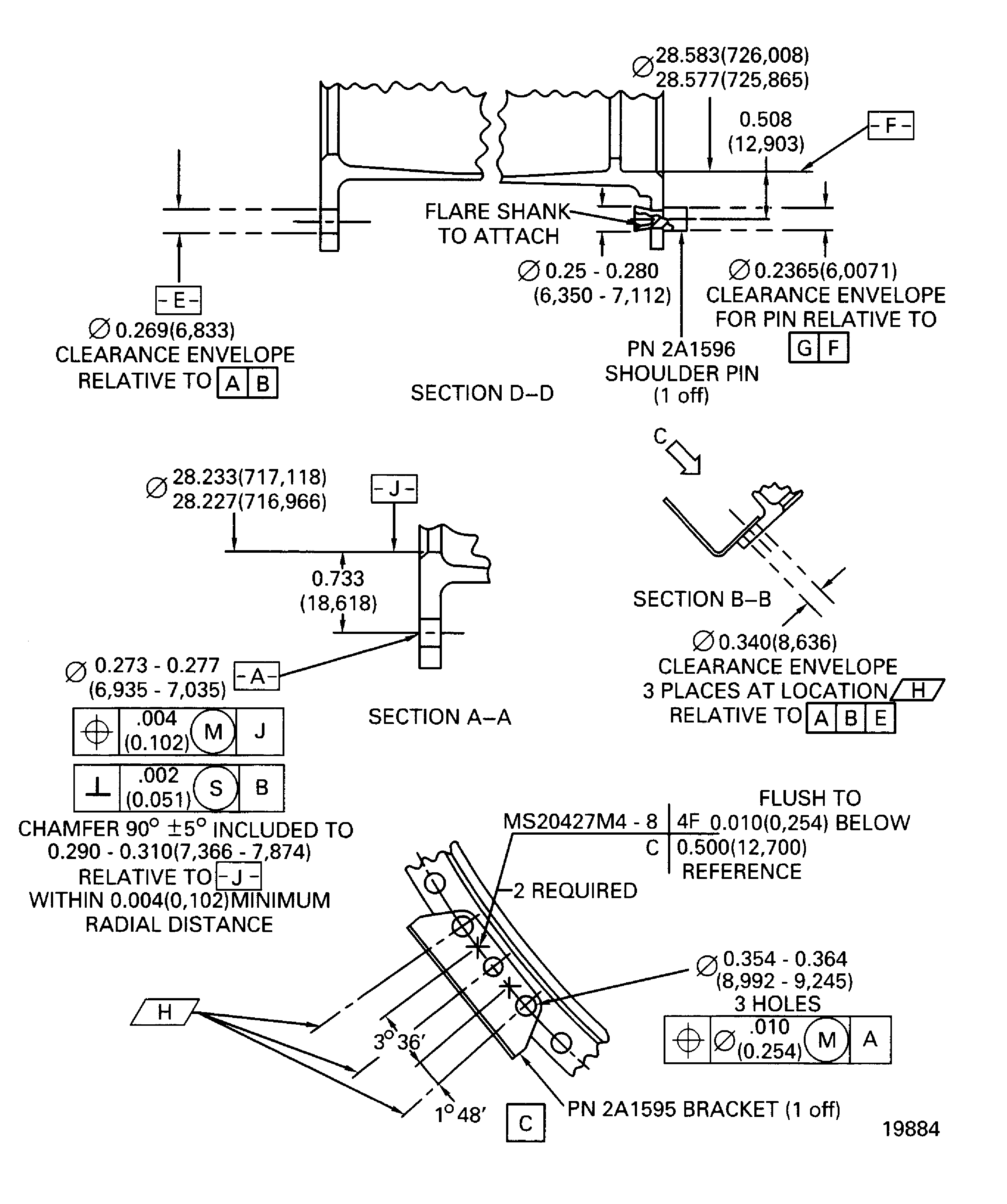 Install the 2A1596 shoulder pin (1 off) in the rear flange of the turbine case assembly.