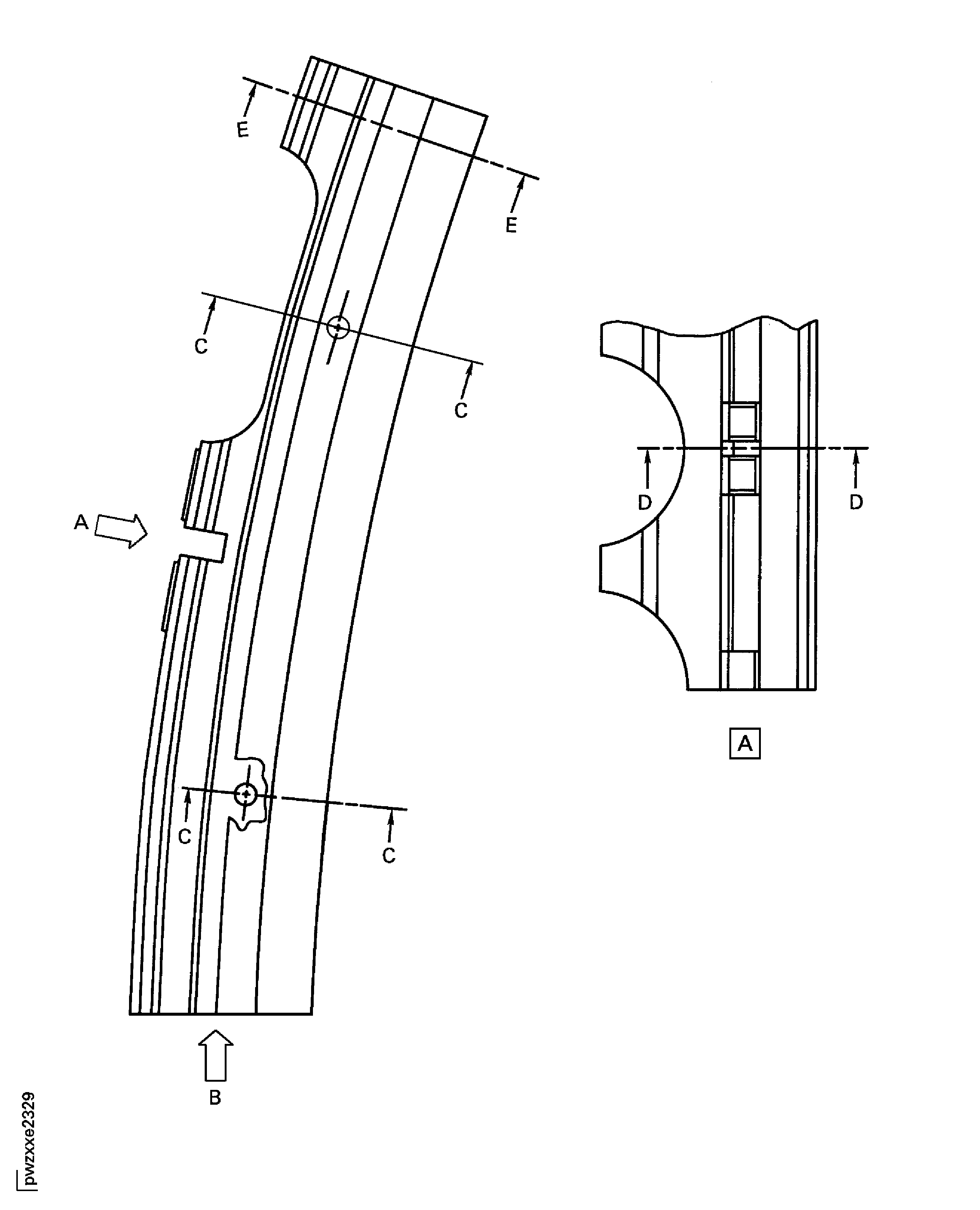 Figure: Stage 2 HPT duct support assembly (PN 2A0189, PN 2A1653 and PN 2A2270) (detail assembly) inspection locations