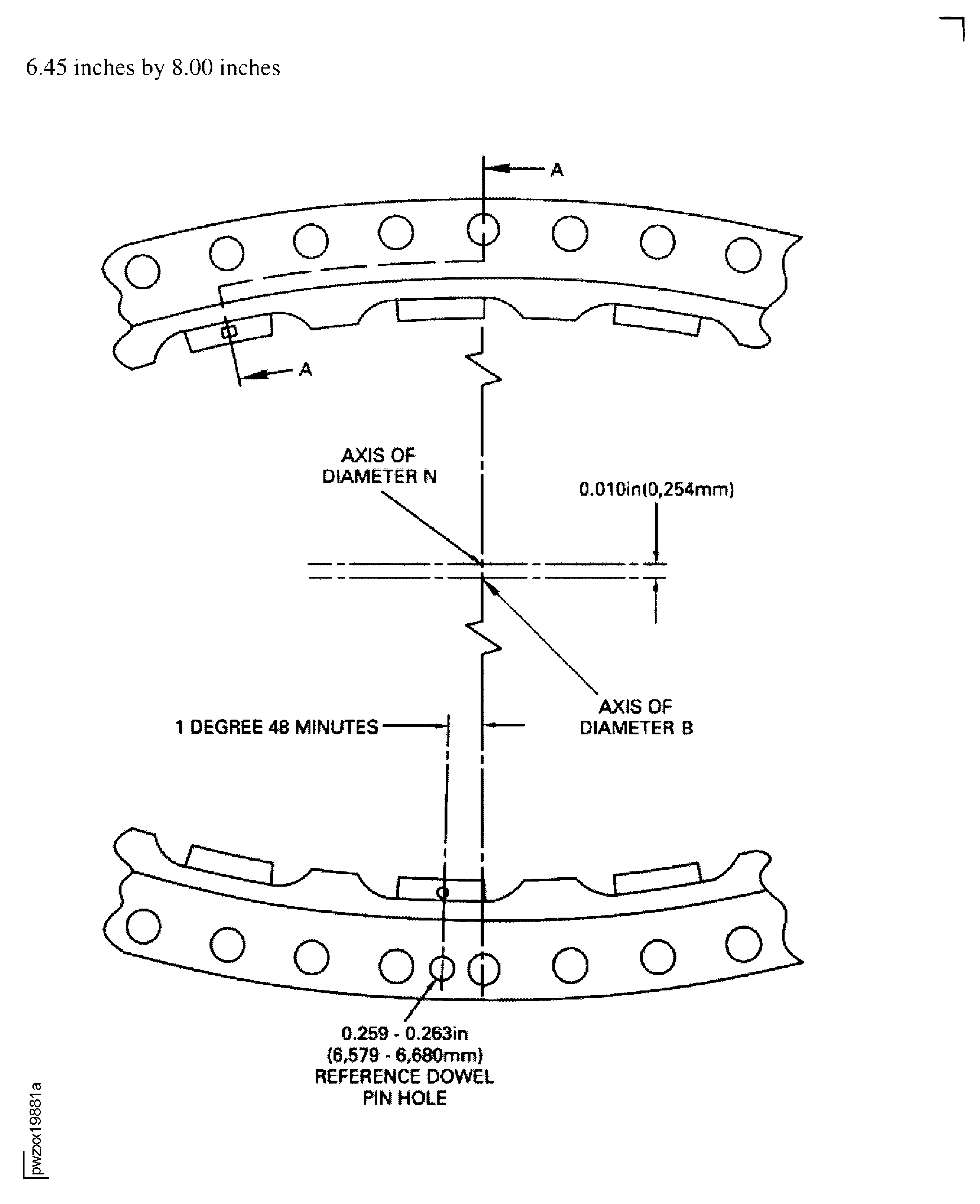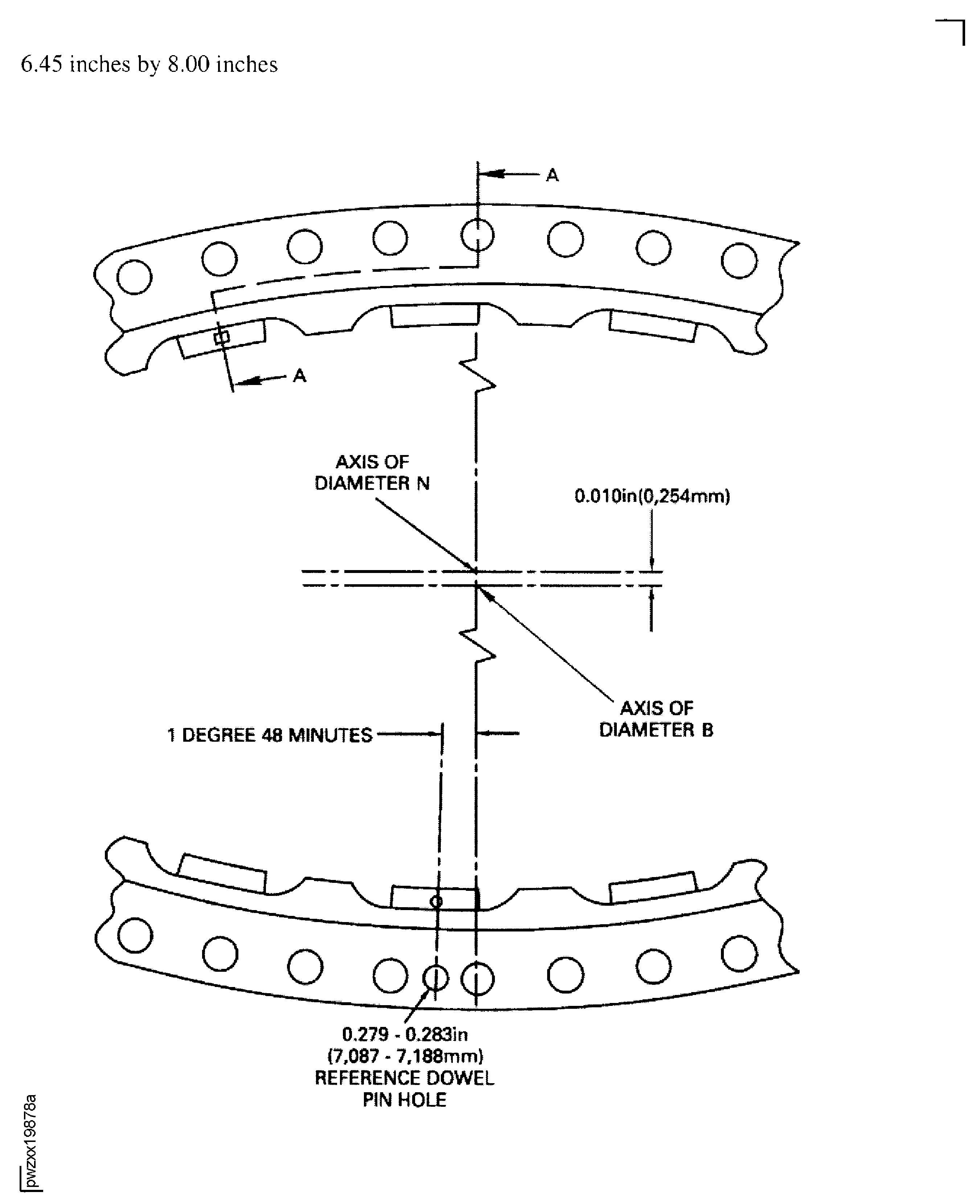 All dimensions apply when Surface E is flat by 0.002 in. (0.051 mm) and Diameter B maintains a clearance envelope of 28.592 in. (726.925 mm) in a free or held condition. In a held condition, hold the air seal only on Surfaces E and F and Diameter B. In a free condition Surface E is flat by 0.010 in. (0.254 mm) and Diameter B is 28.550 to 28.626 in. (725.17 to 727.10 mm) in diameter.Make a permanent mark by the procedure given in the SPM TASK 70-09-00-400-501.