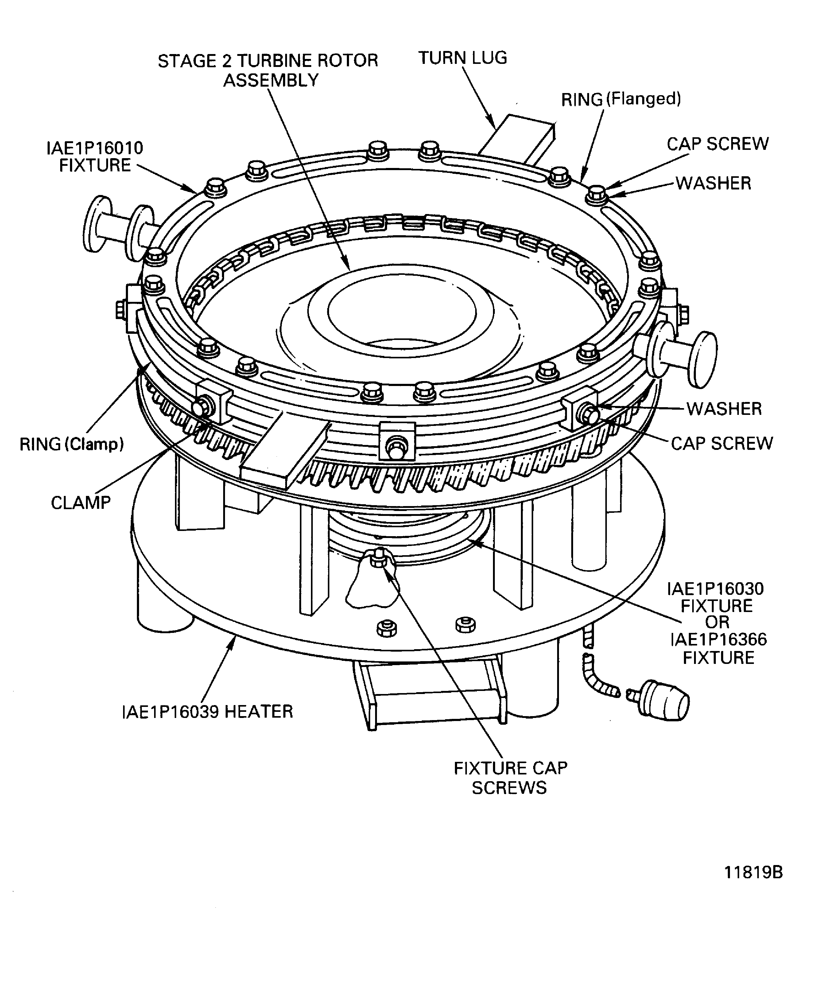 Move the stage 2 tubrine rotor assembly above the IAE 1P16039 Heater 1 off.