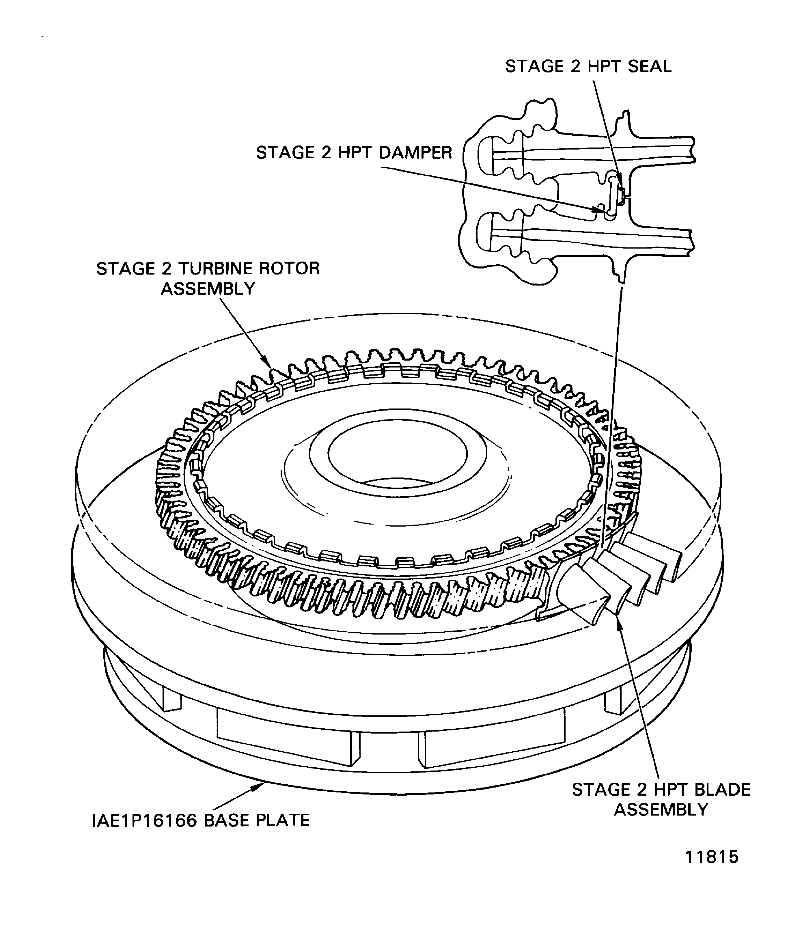Put the stage 2 turbine rotor assembly above the IAE 1P16166 Base plate.