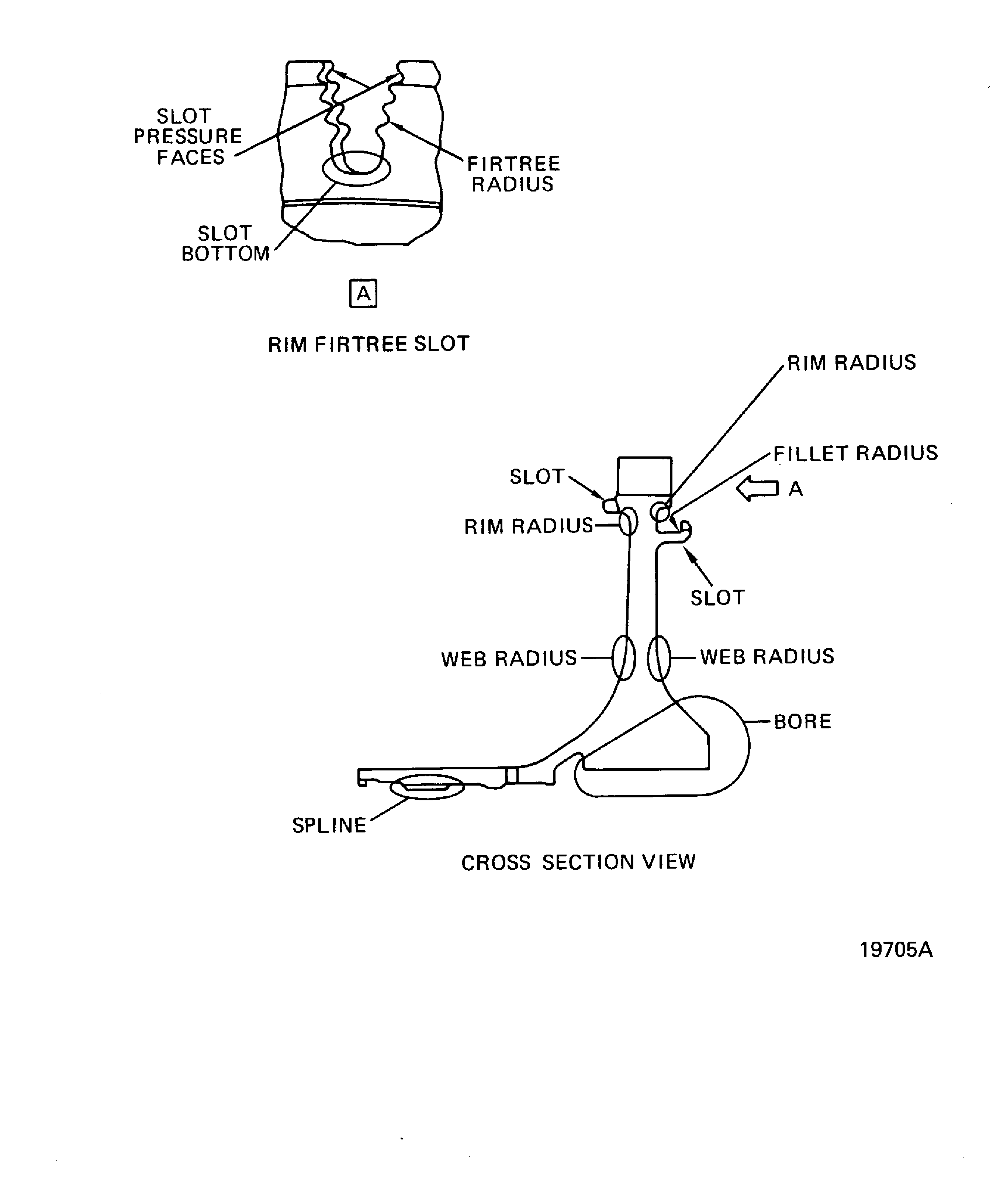 When you inspect the stage 2 turbine hub for cracks make sure you check the important areas. These areas are shown in Figure.