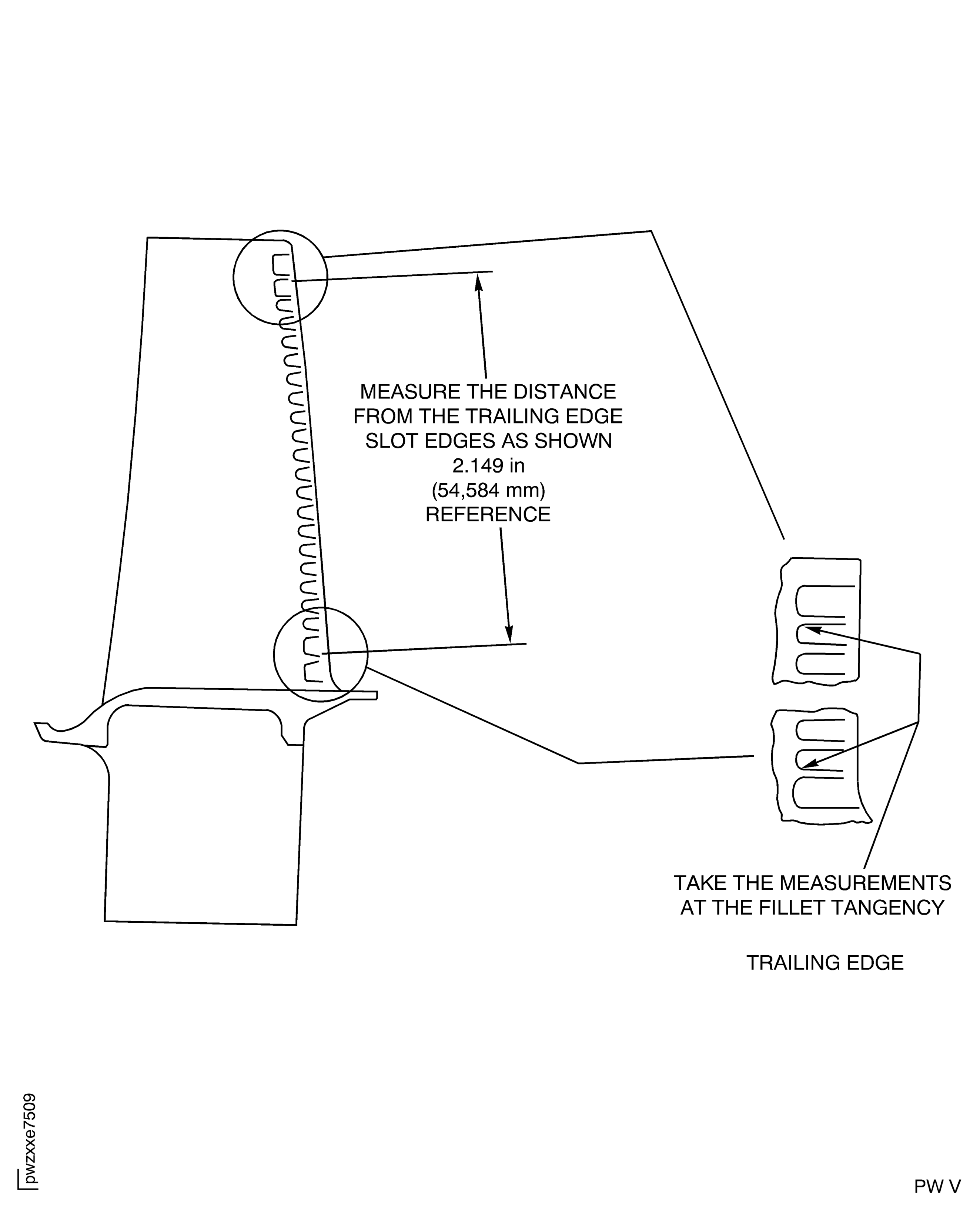 Stage 2 HPT Blade Assembly Trailing Edge Inspection Locations
