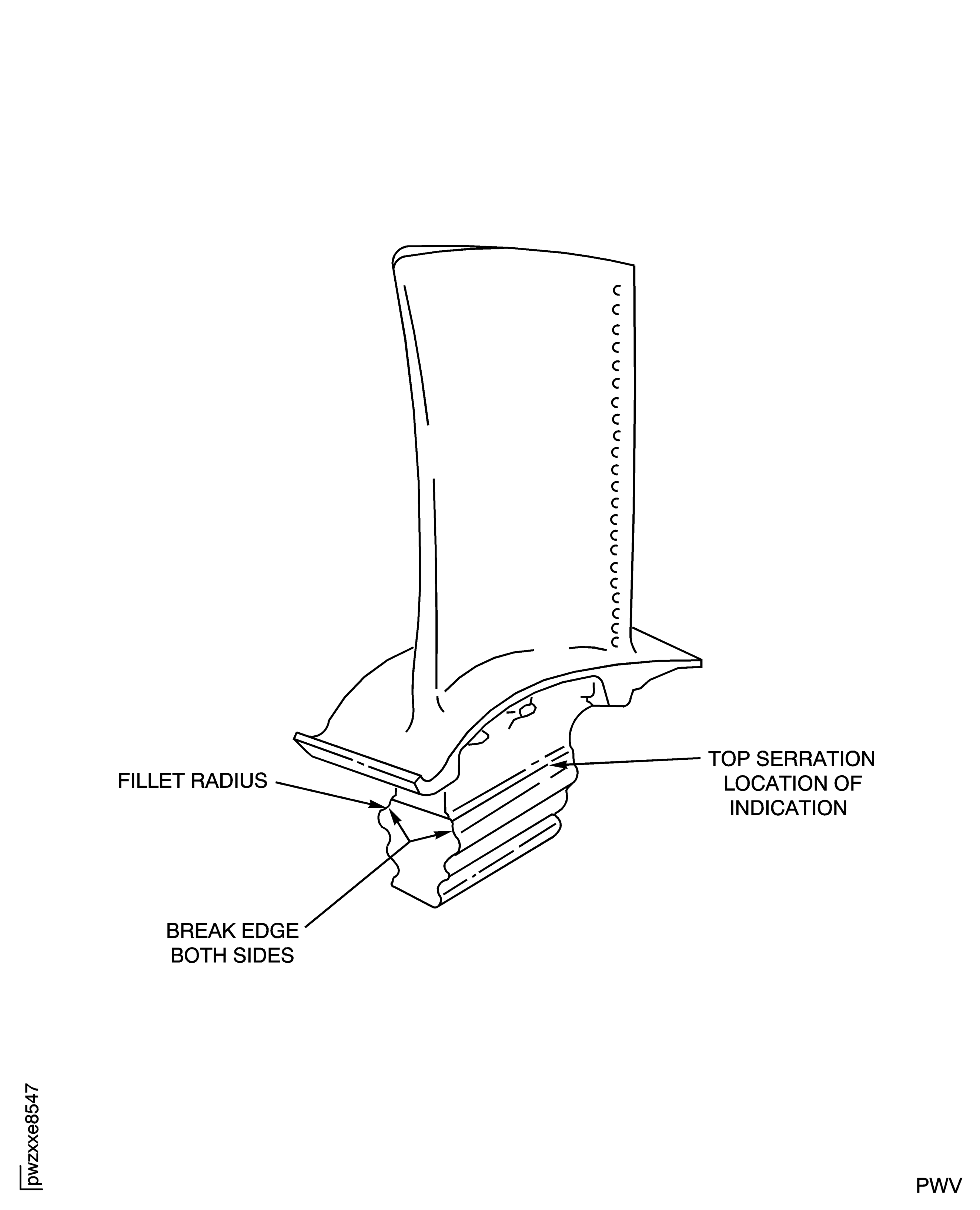 Stage 2 HPT Blade Assembly Top Most Serration Inspection Locations