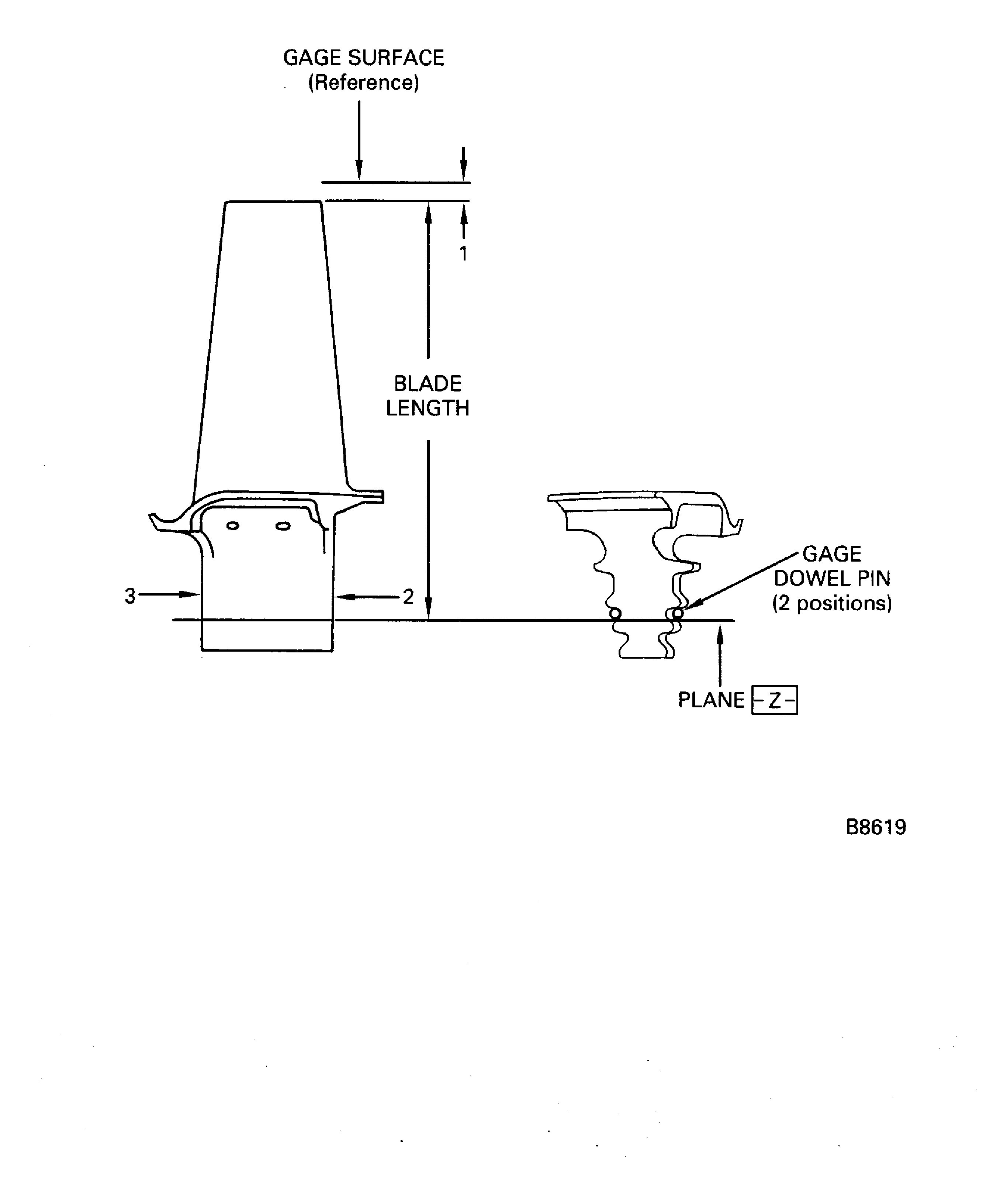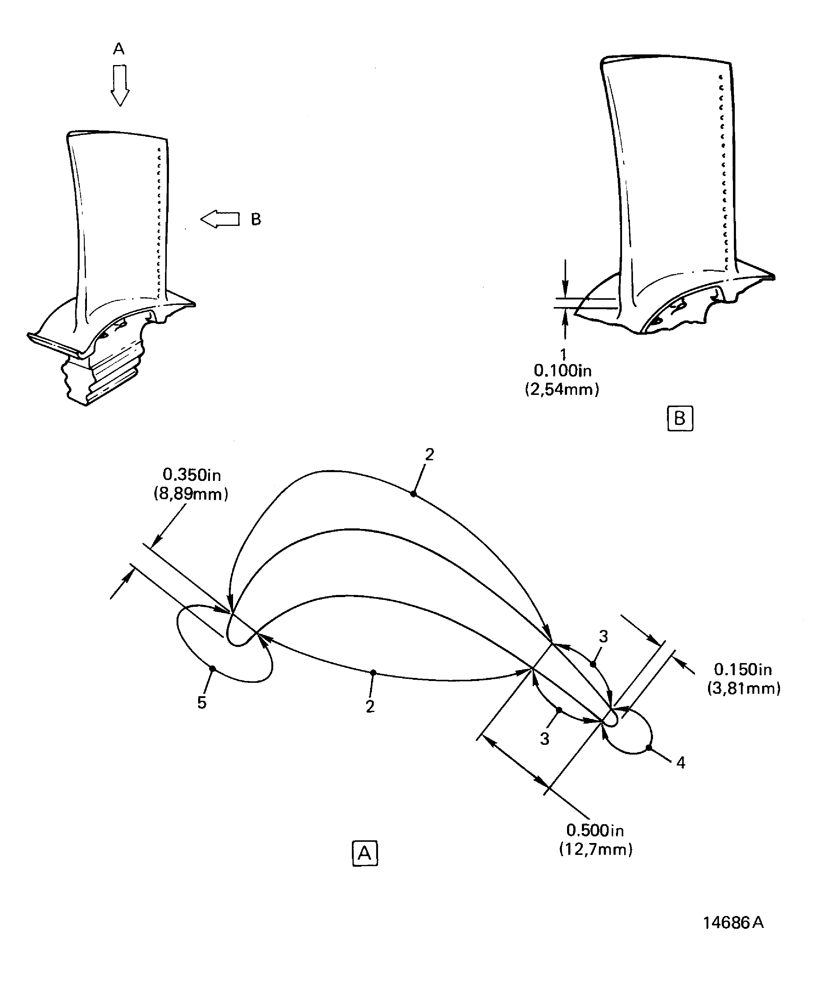 EXAMPLE: If the measured length at the time of manufacture was 3.504in. (89.002 mm), the PN 2A0402 or 2A0402-100 blade is marked at location 2 with the numbers 04 and the PN 2A1102 or 2A8602 blade is marked at location 2 with the numbers 504. This is the reference number from which the blade growth is found.