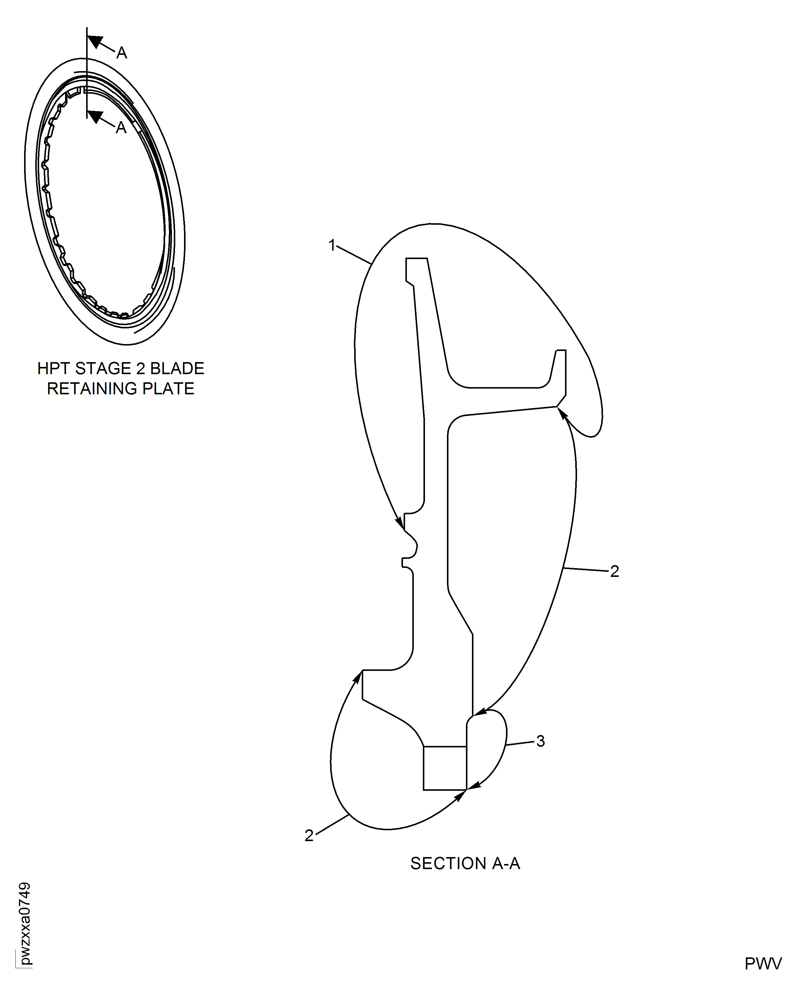 Shotpeen the repaired area(s) on HPT Stage 2 Blade Retaining Plate by SPM TASK 70-38-13-380-501. See Figure.