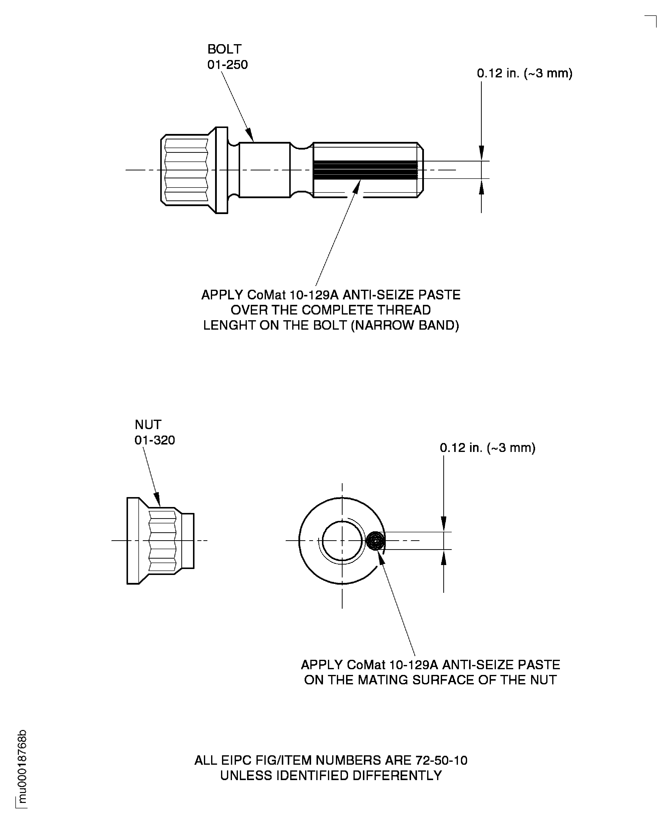 Lubricate all new bolts and new nuts with CoMat 10-129A ANTI-SEIZE PASTE as follows: