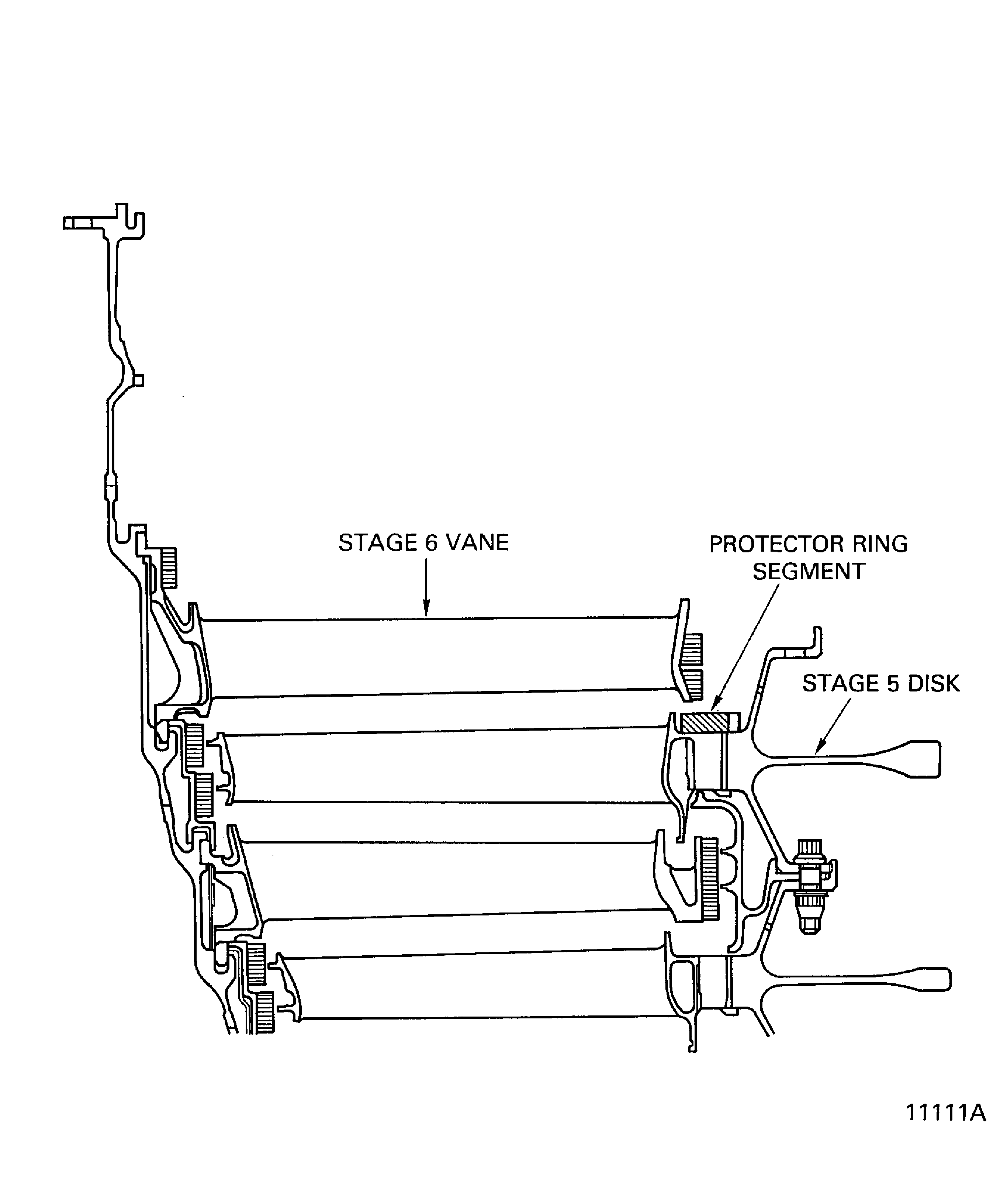 Install the IAE 1M14124 Protector ring segment 3 off between the stage 6 vane inner platforms and the stage 5 blade roots.