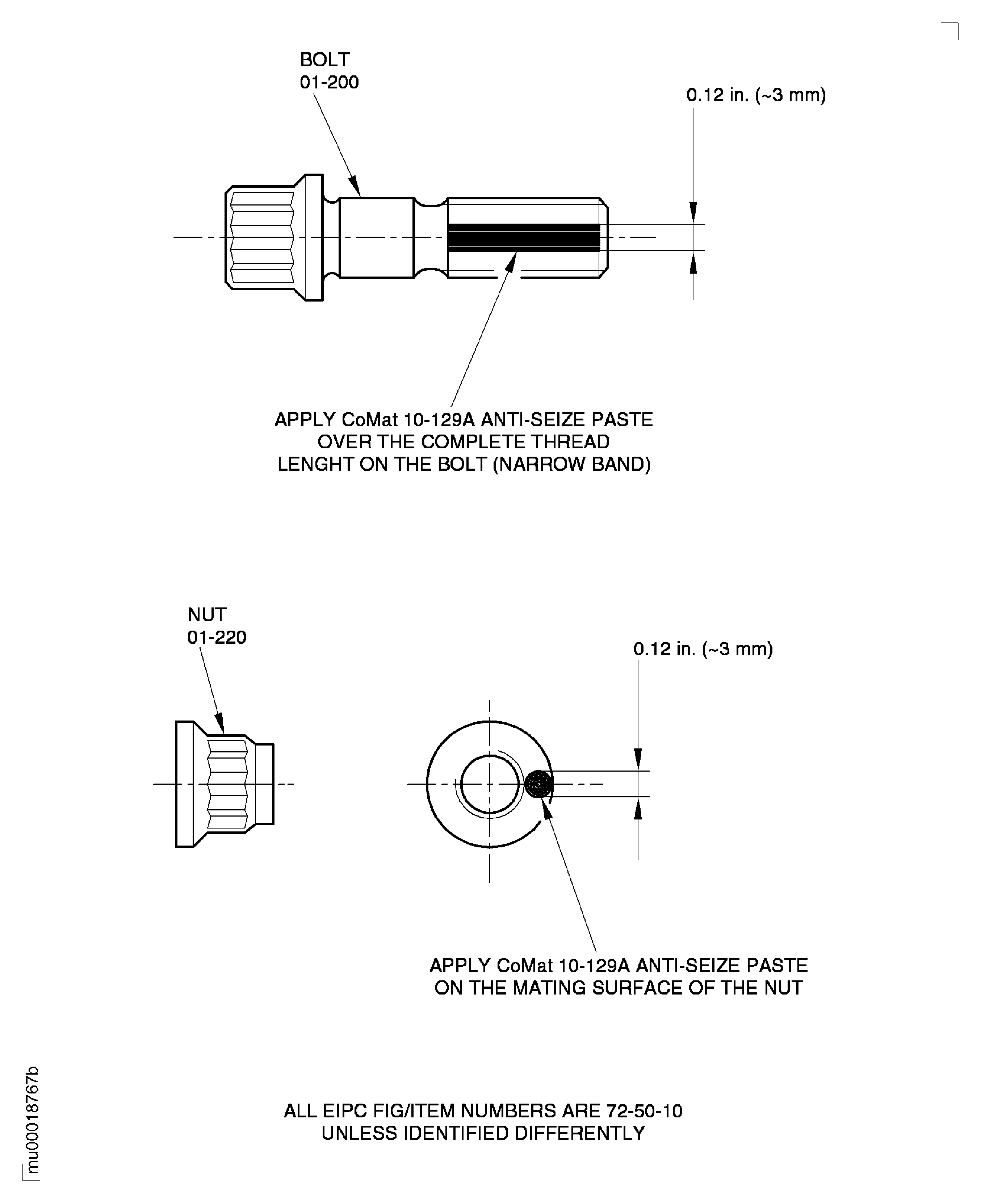 Lubricate all bolts and nuts with CoMat 10-129A ANTI-SEIZE PASTE as follows.