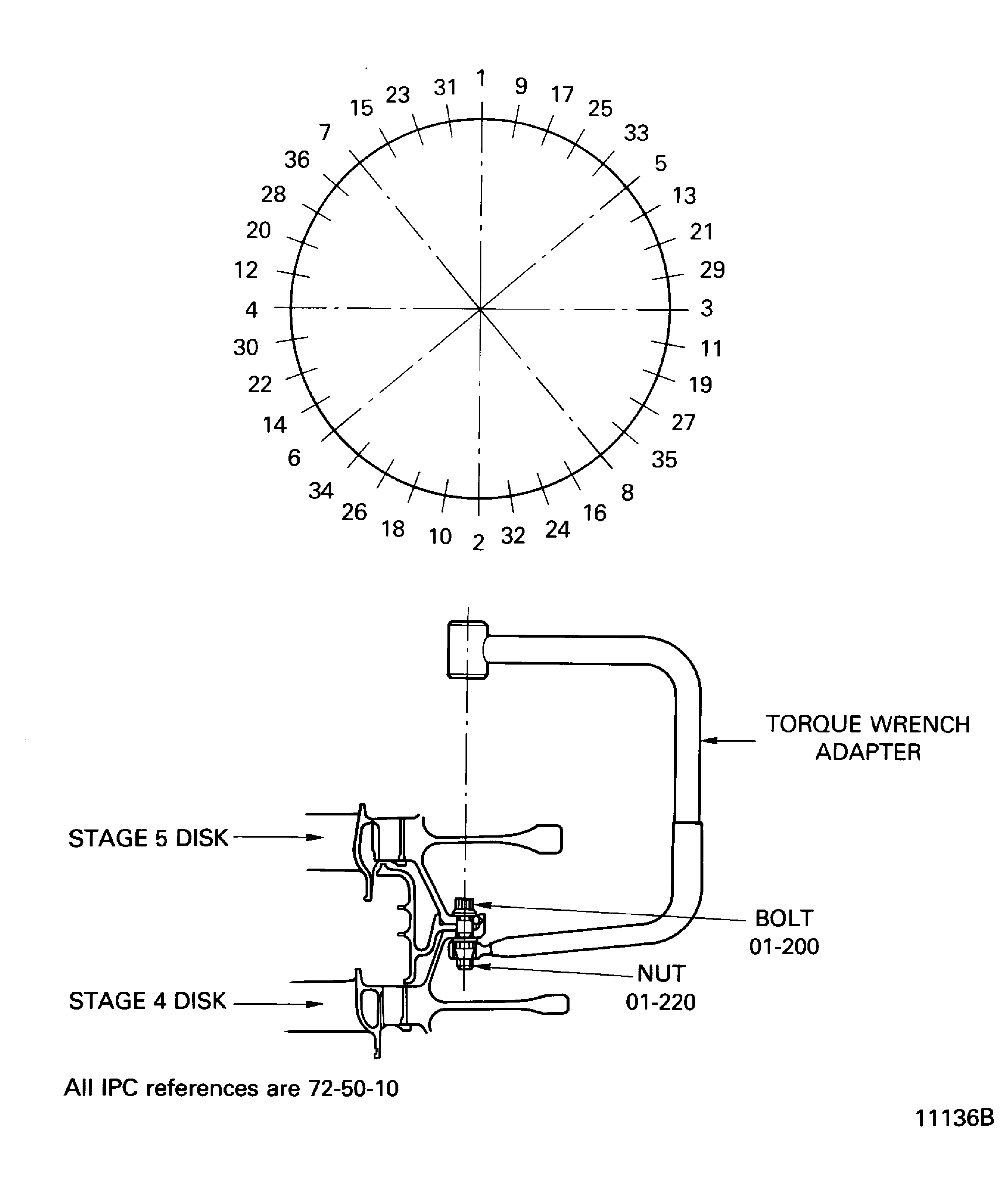 Check all nuts again in clockwise direction for final torque. Use the IAE 1M14054 Torque wrench adapter 1 off.