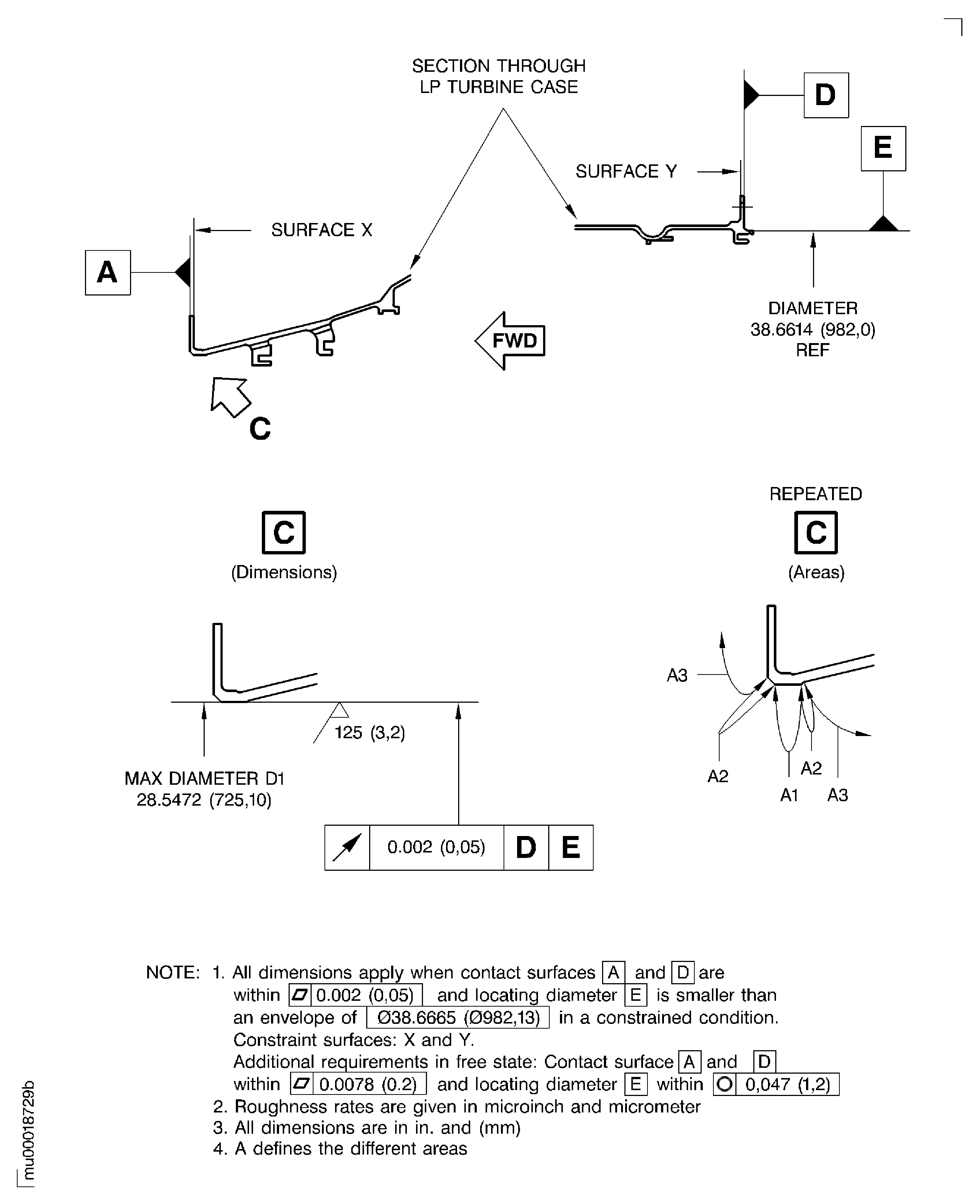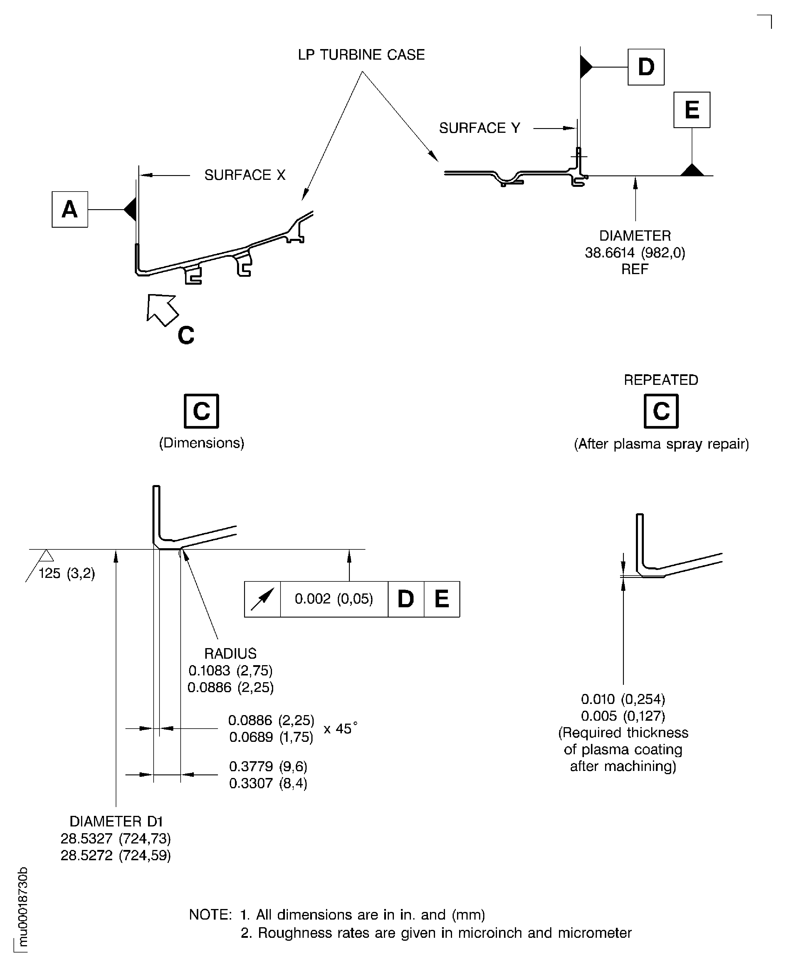 If the snap diameter of the LP turbine case front flange snap diameter was plasma spray repaired before, remove the old coating fully.For dimensions refer to Figure.