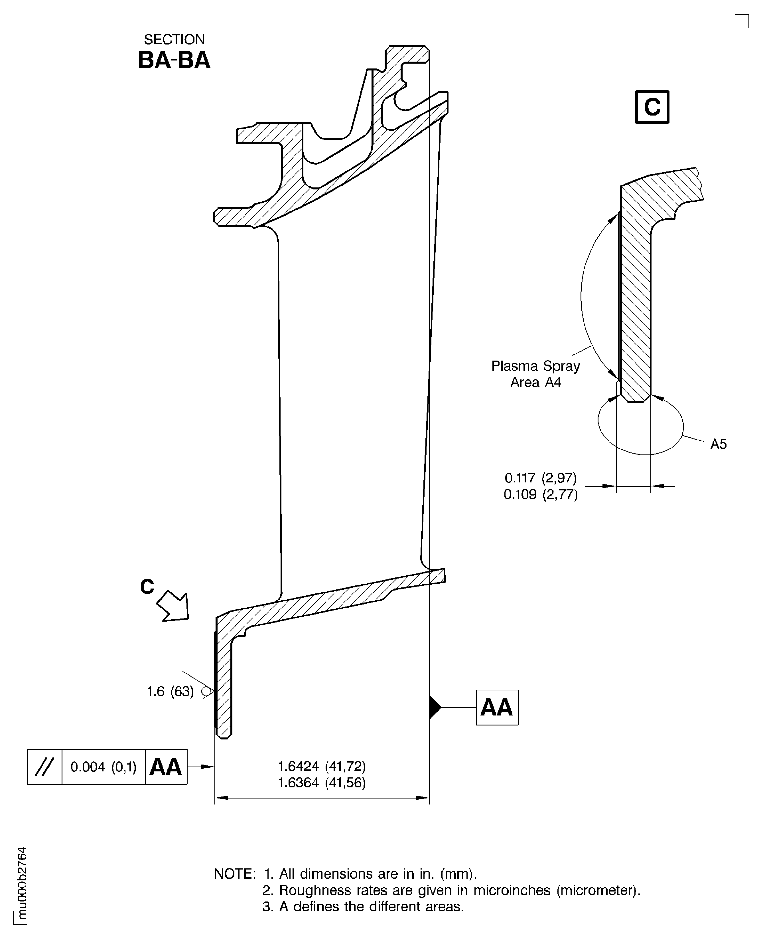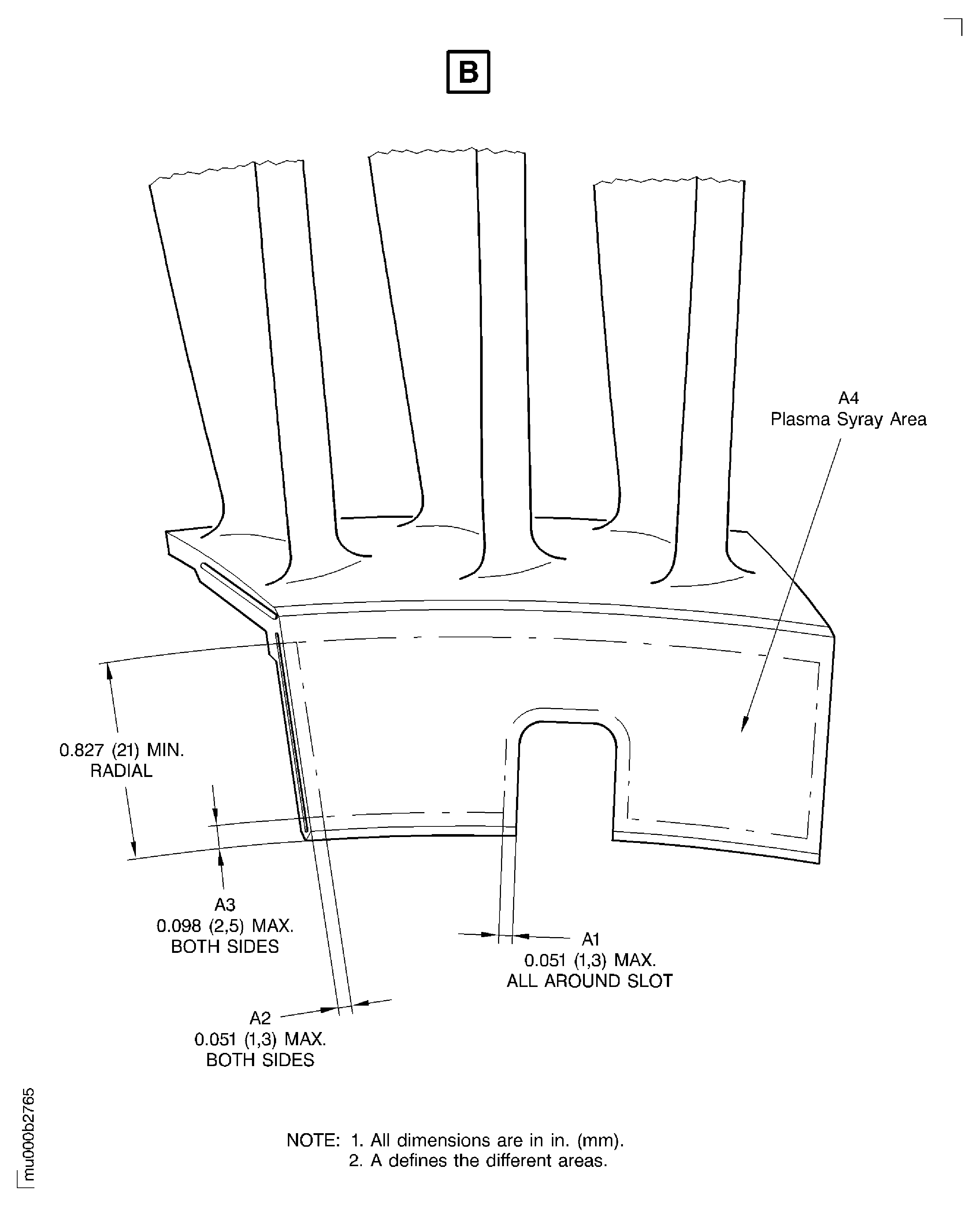 Figure: Inner buttress front flange plasma spray repair area (masking) of the stage 3 turbine vane