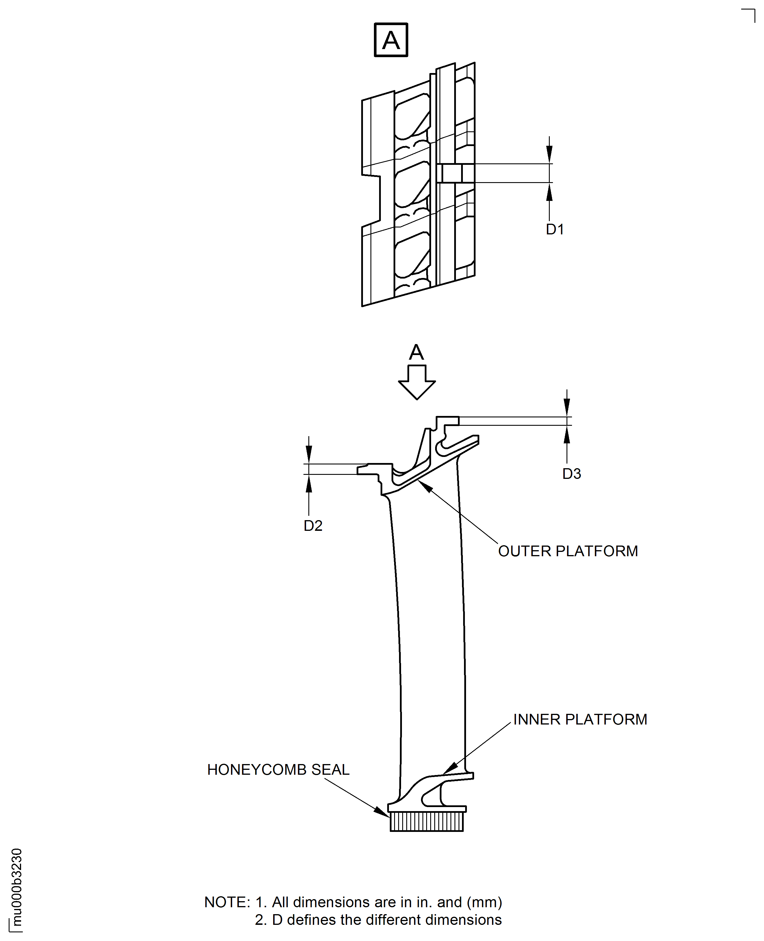 SUBTASK 72-50-22-220-014 Examine the Stage 4 Turbine Vanes at Dimension D2 for Wear