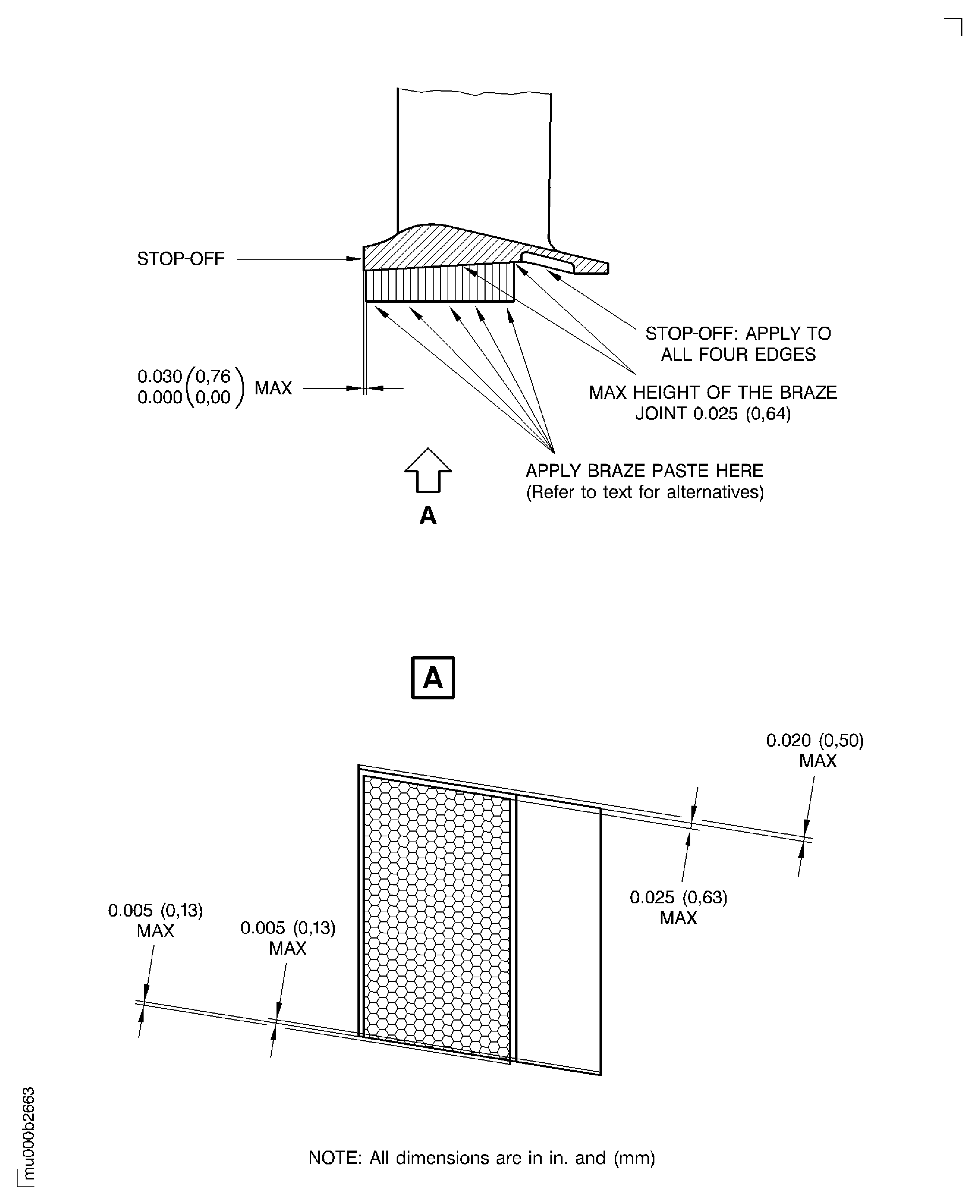 Honeycomb wall thickness must not be increased by more than 0.001 in. (0.03 mm) in the area above the braze fillet.