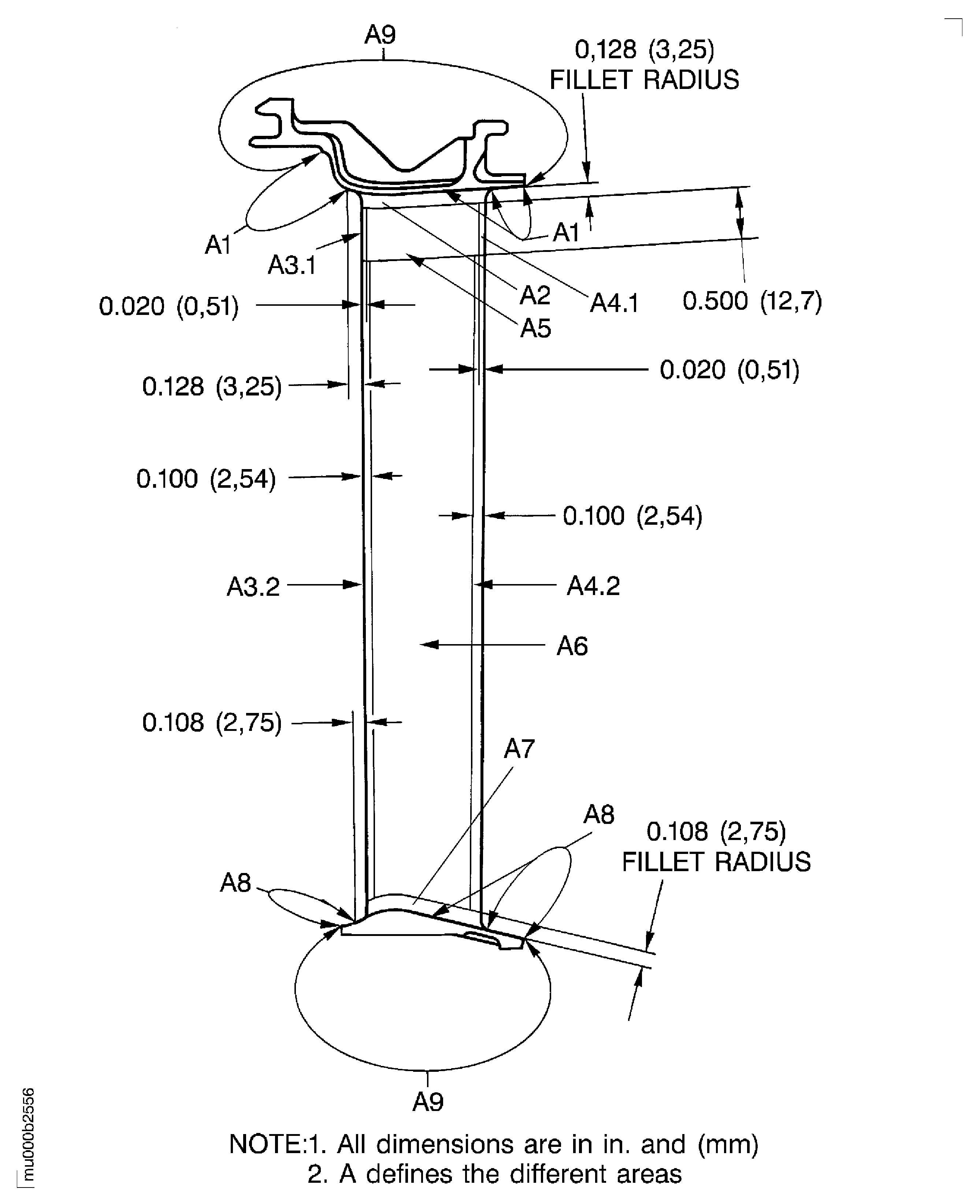 Nicked, dented and pitted in Area A3.1