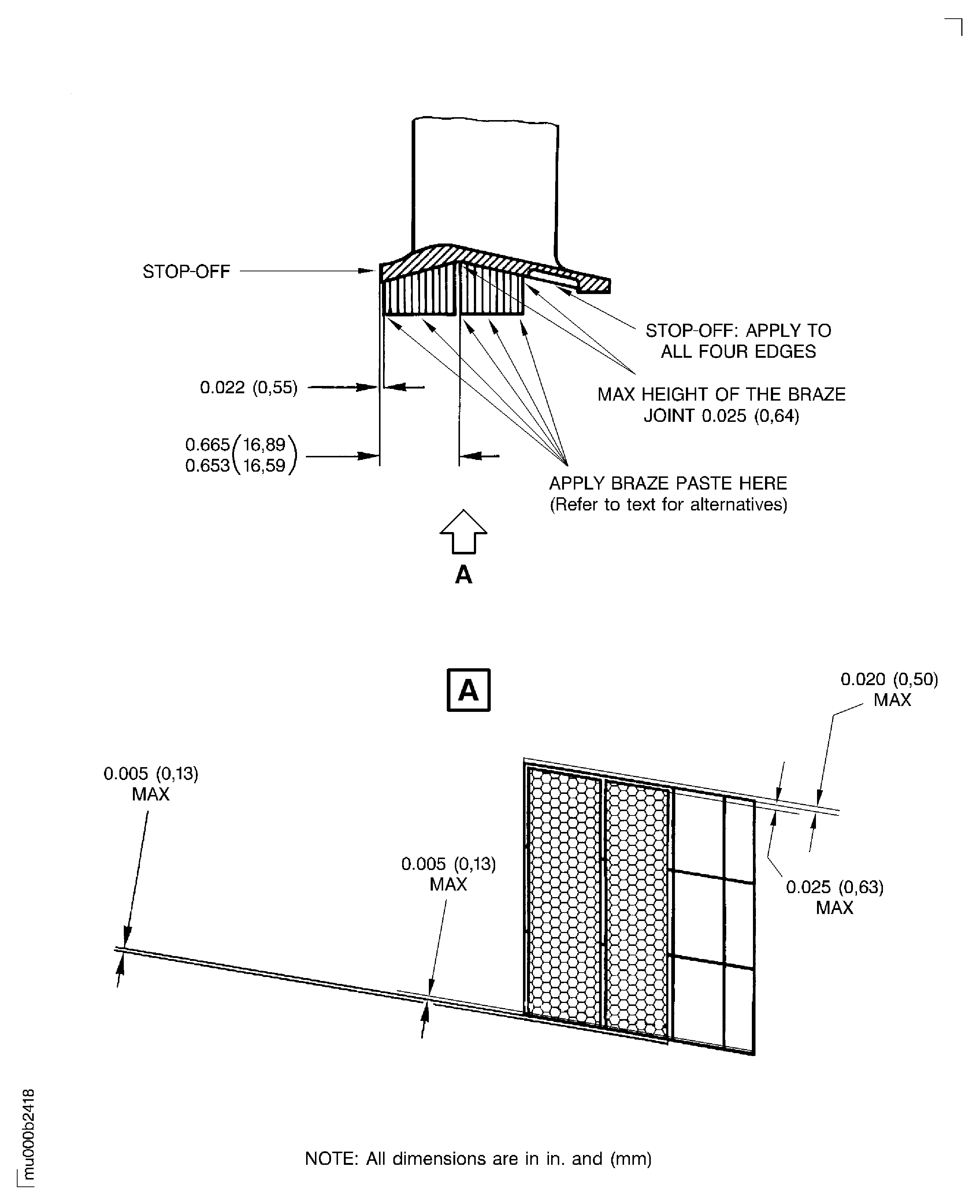 Honeycomb wall thickness must not be increased by more than 0.001 in (0.03 mm) in the area above the braze fillet.