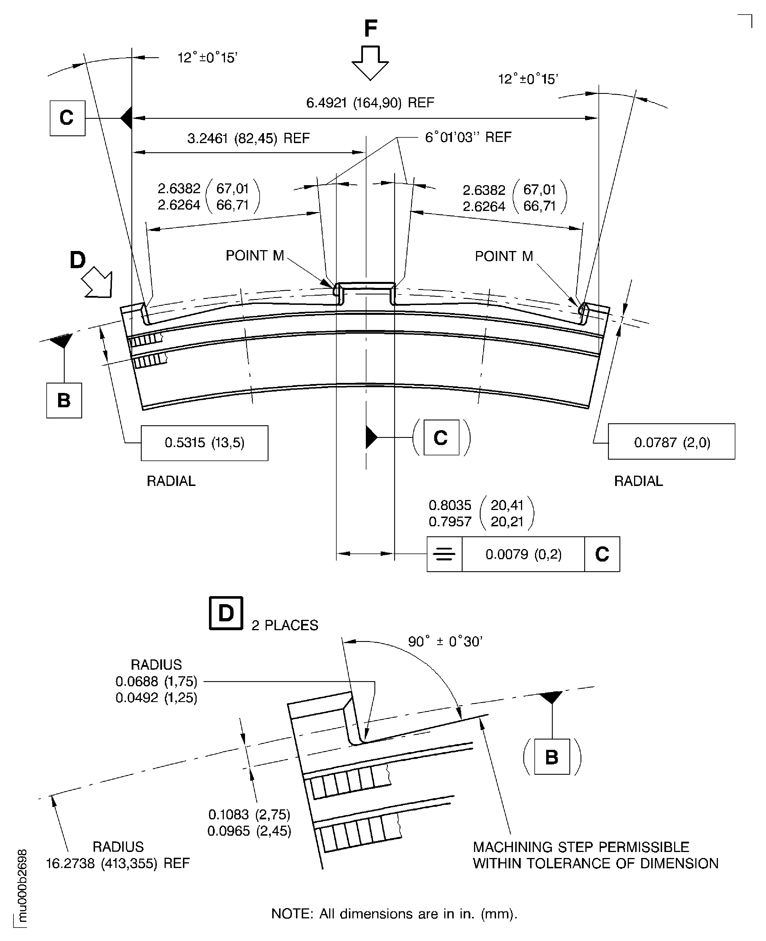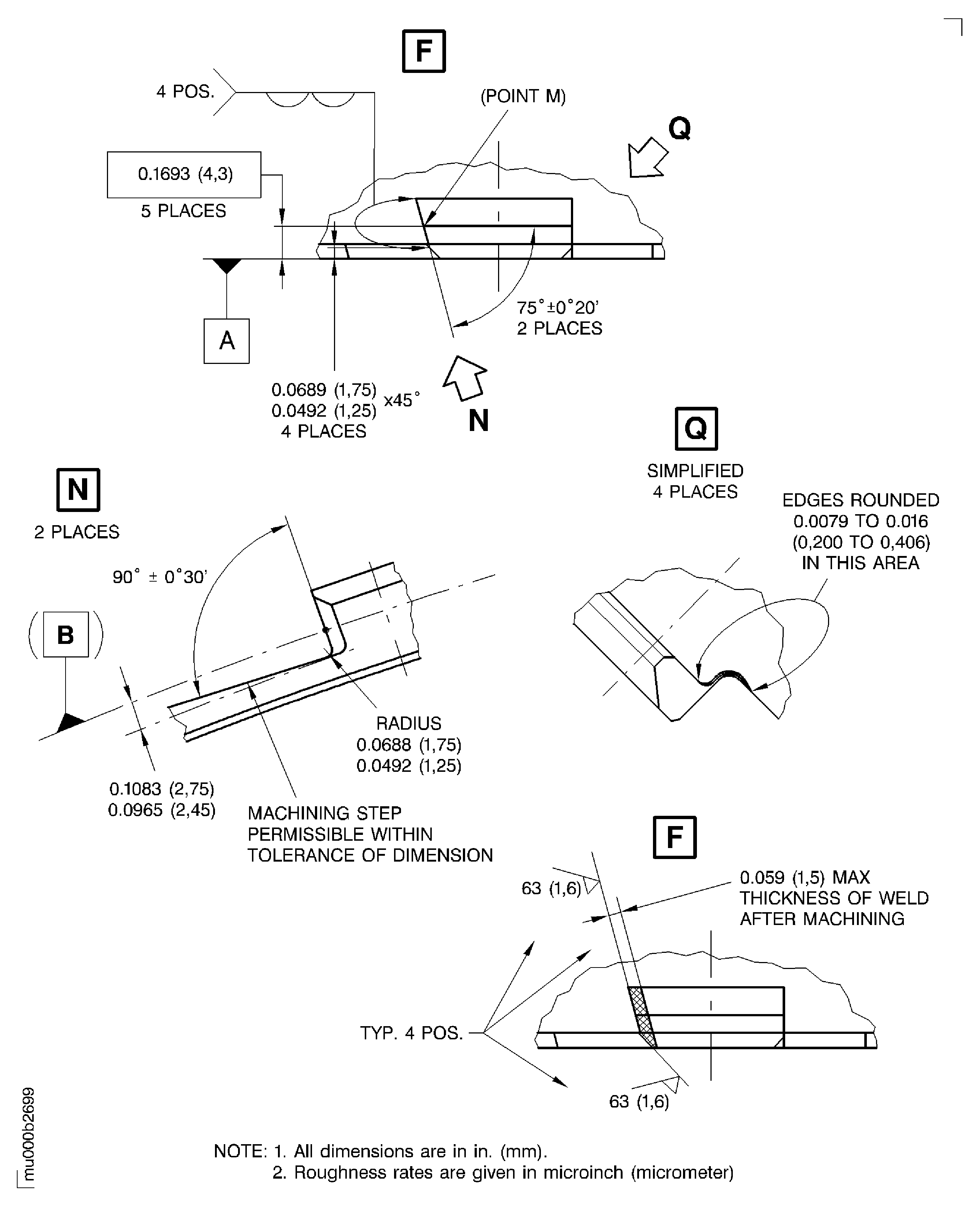 Figure: Weld repair dimensions of the stage 3 airseal segment rear hook faces