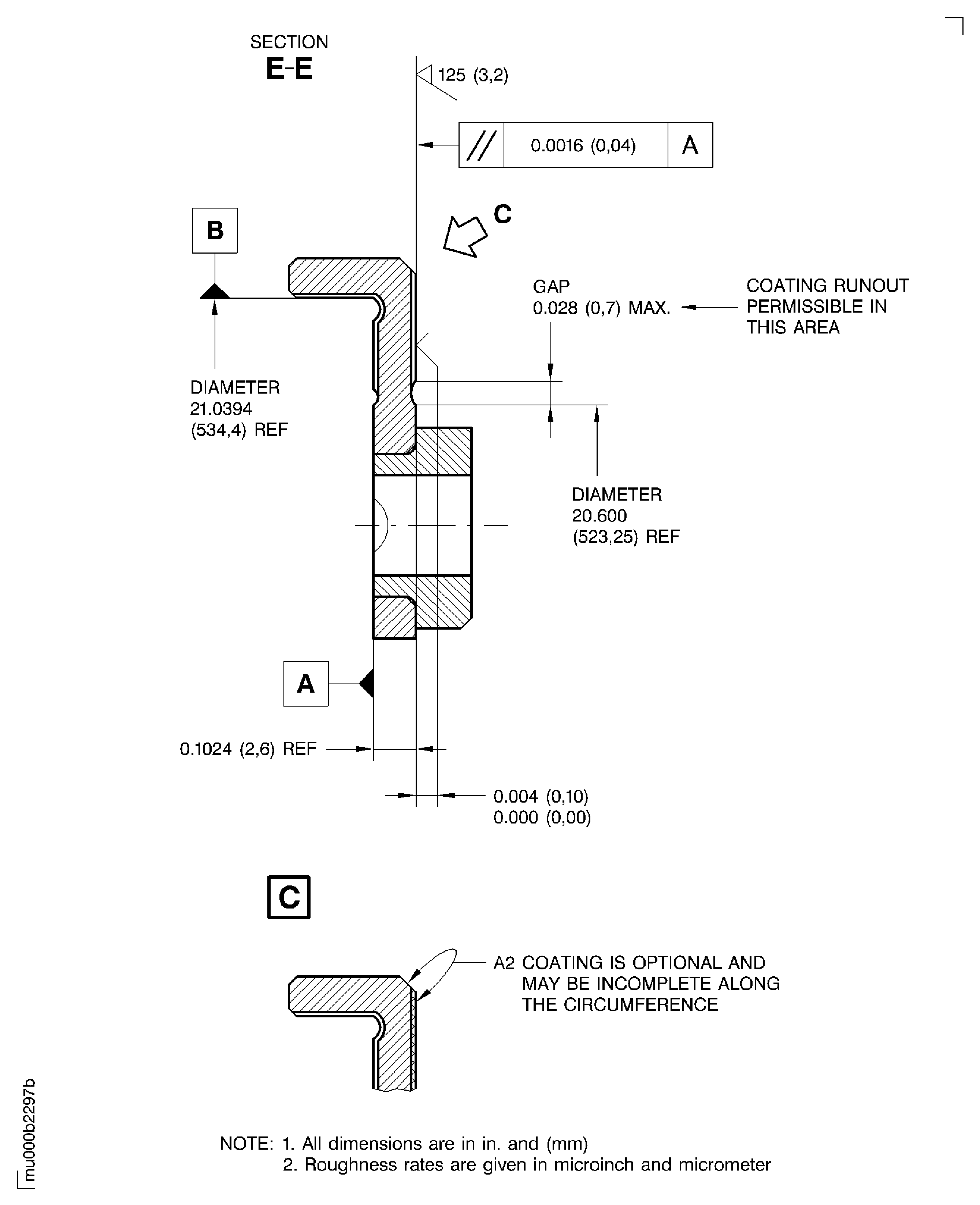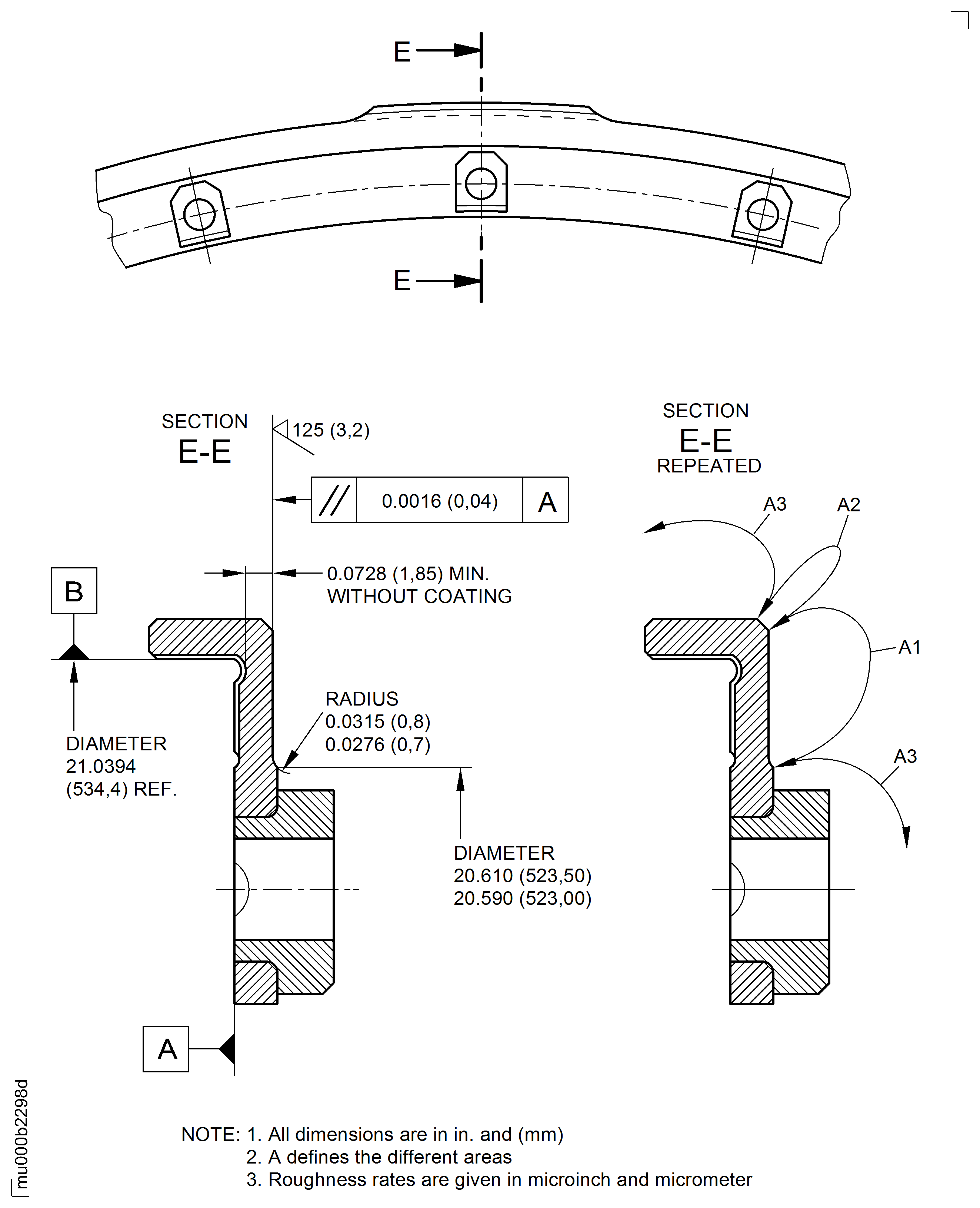 In area A1 minimum coating thickness is 0.0039 in. (0.10 mm) after machining and maximum coating thickness is 0.030 in. (0.75 mm) before machining.