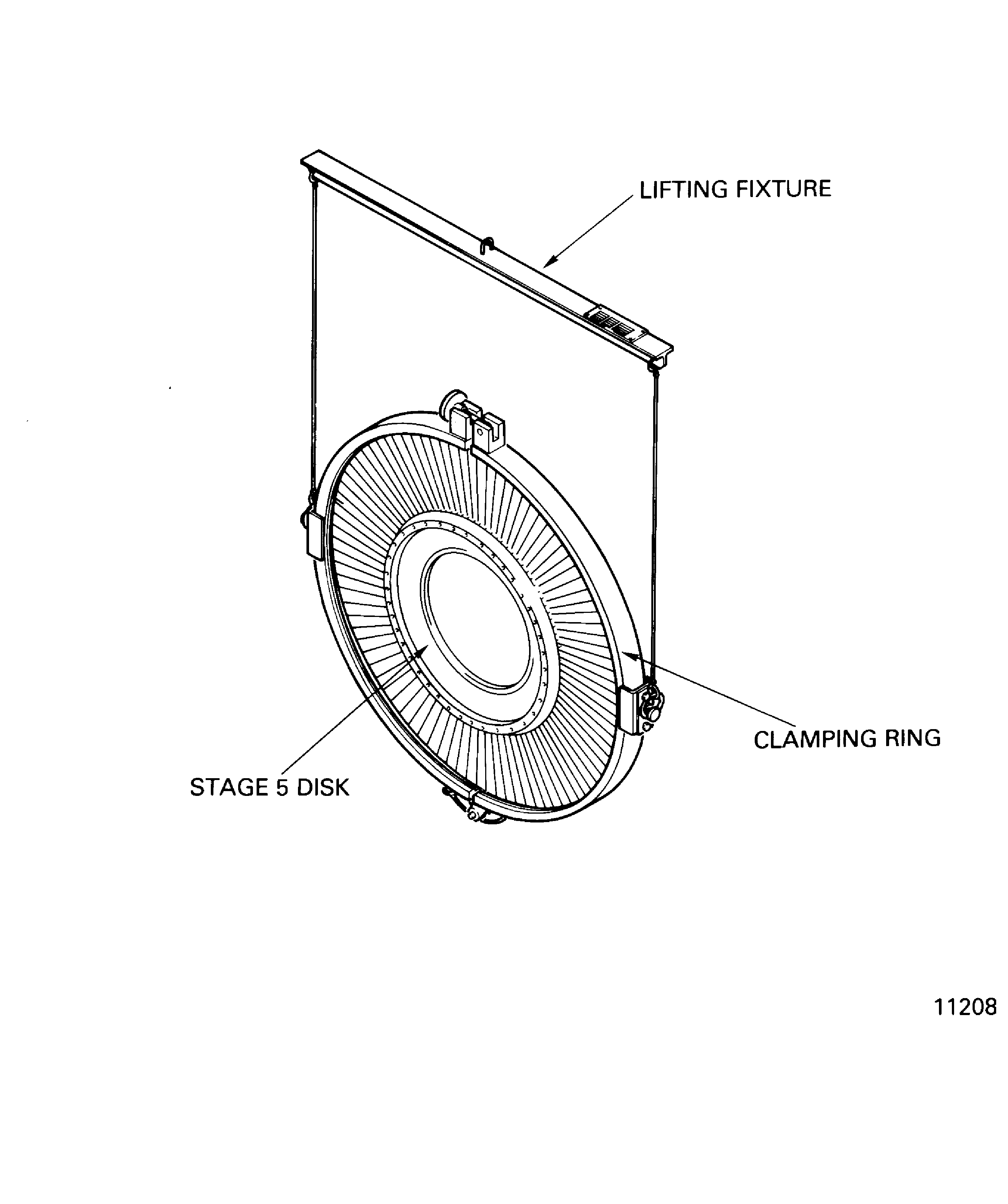 Install the clamping ring to the stage 5 turbine disk. Refer to Step. Remove the quick acting knob and the bar.