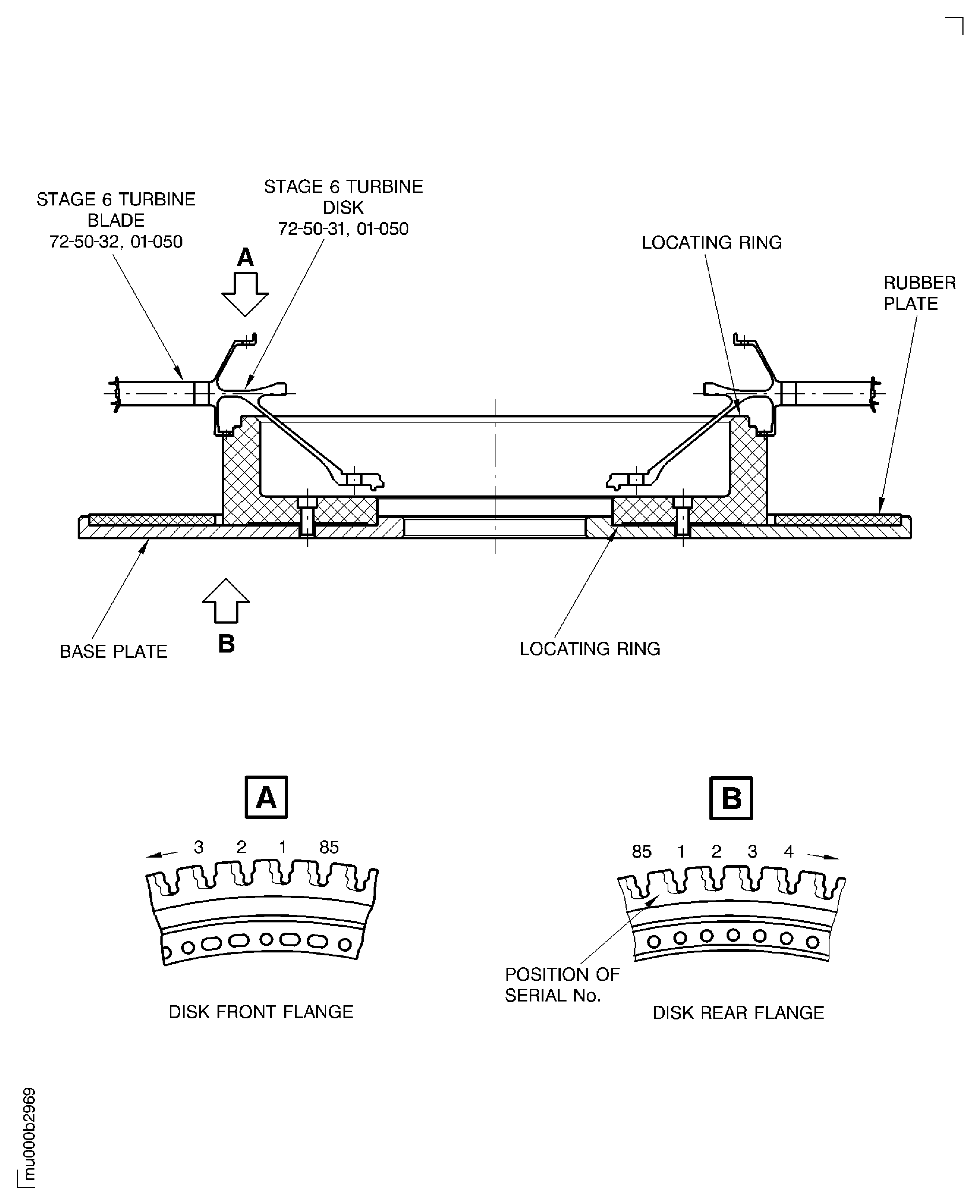Refer to TASK 72-50-00-990-501 for a sectional view of the LP turbine disk and blades.