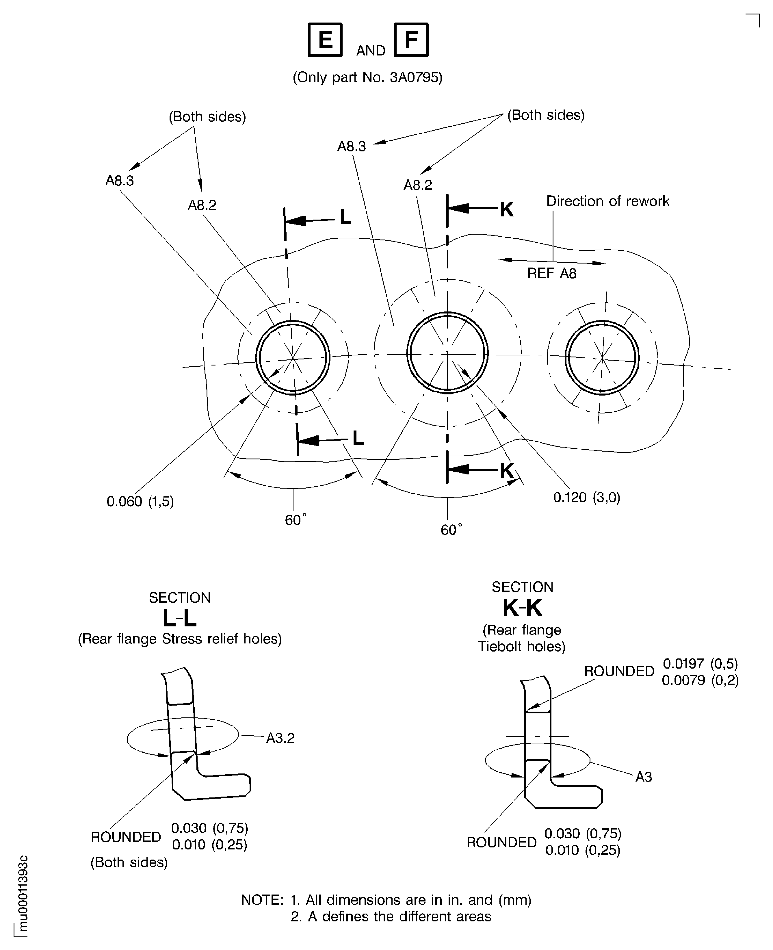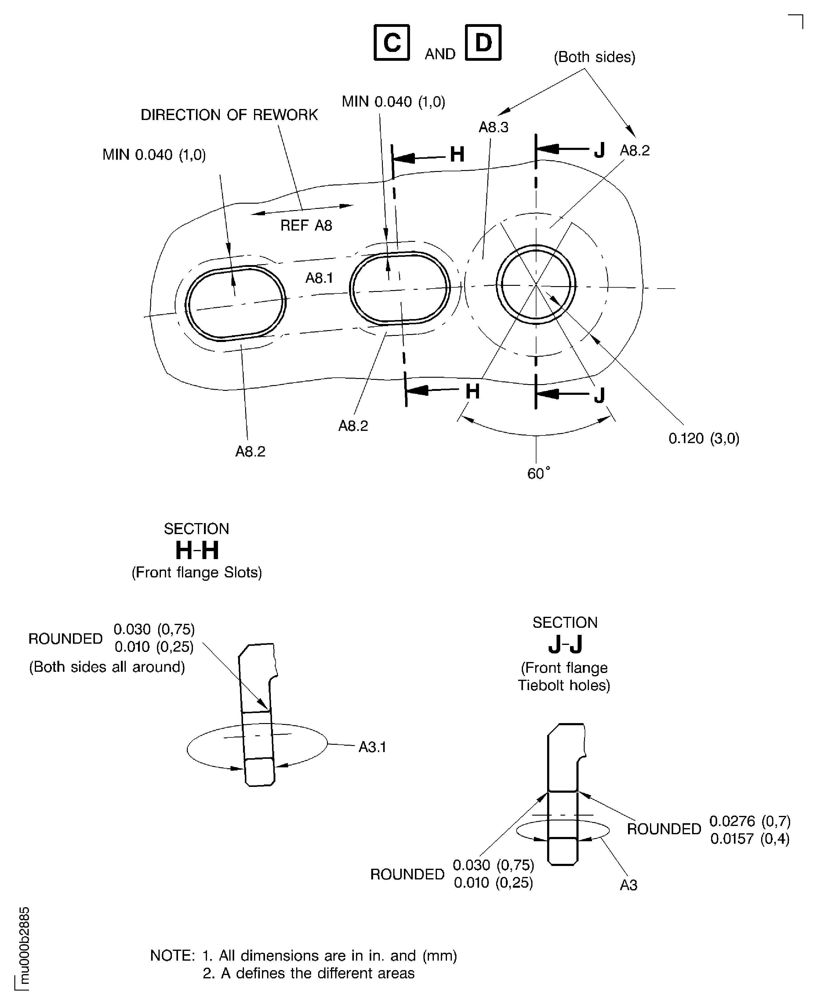 Damage not more than 0.002 in. (0.05 mm) maximum depth to be blended to a 0.003 in. (0.08 mm) maximum depth.