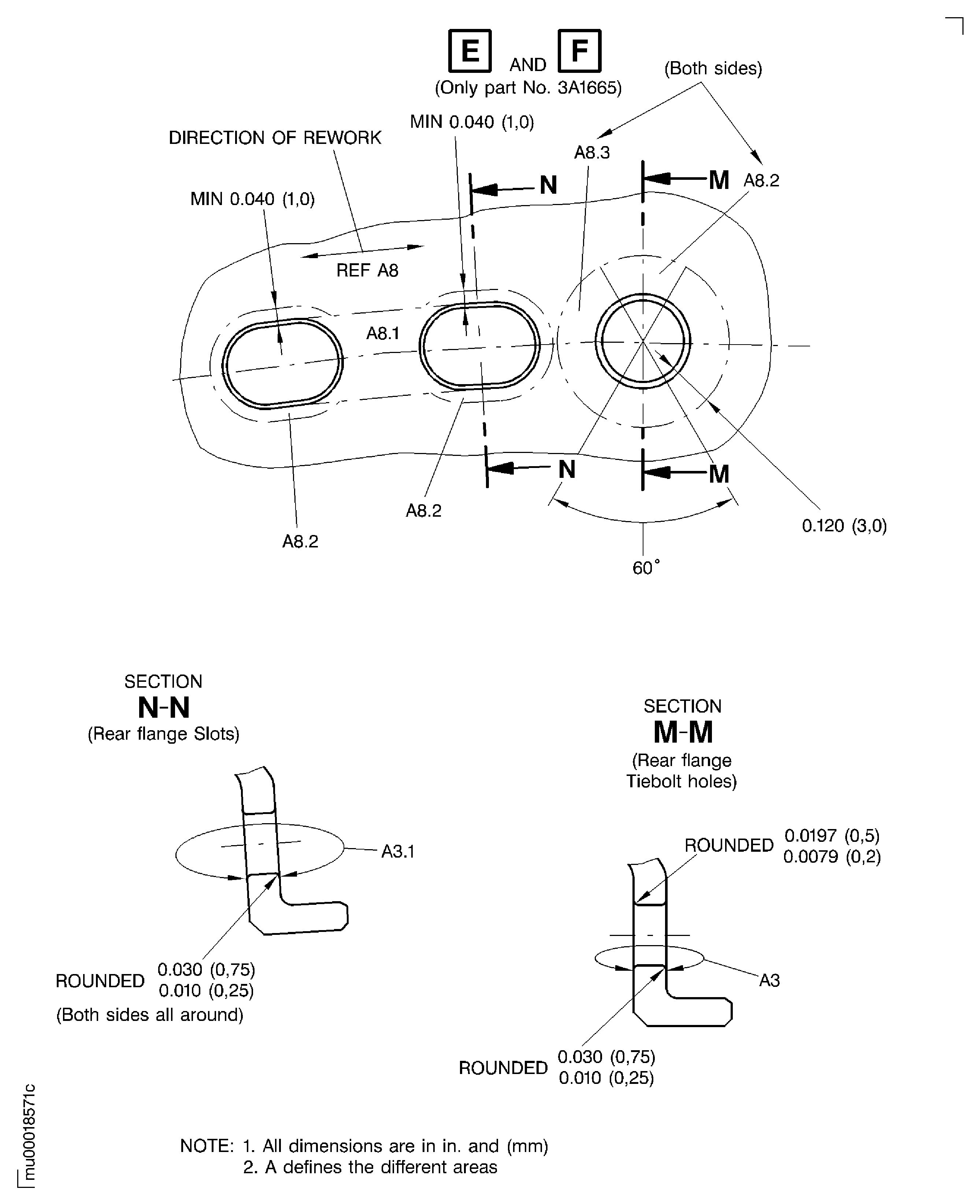 Refer to the SPM TASK 70-35-03-300-501 for blending surface damage.For local blending use a length to depth ratio of 100 to 1 minimum, refer to Figure.If there is a number of damage marks together blend the whole area to the specified depth. Unless given differently, there is no limit for the number of blends.Maximum permitted diameter of the holes is 0.2618 in. (6.65 mm).
