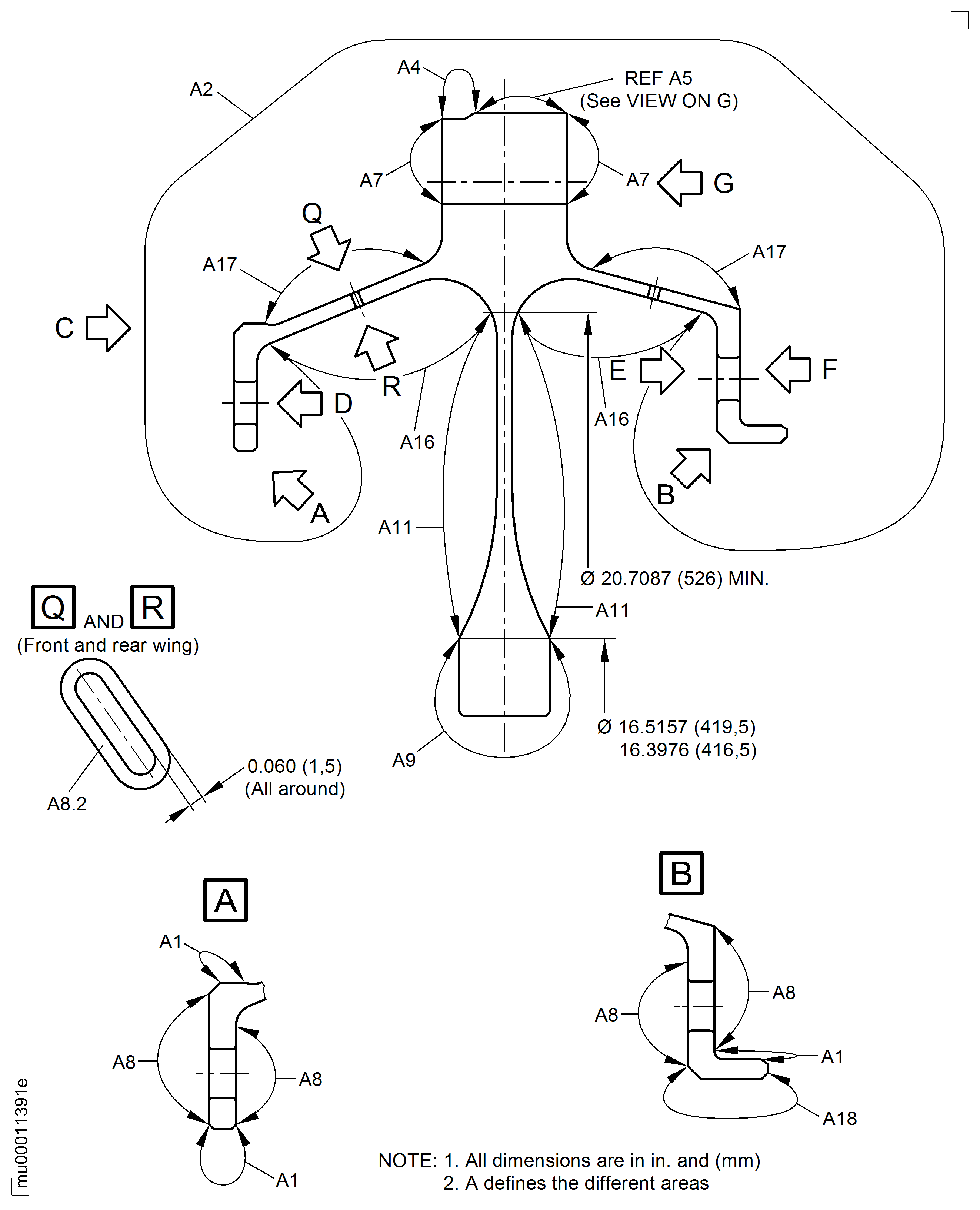 Blend repair in area A8 (without areas A8.1, A8.2, and A8.3).