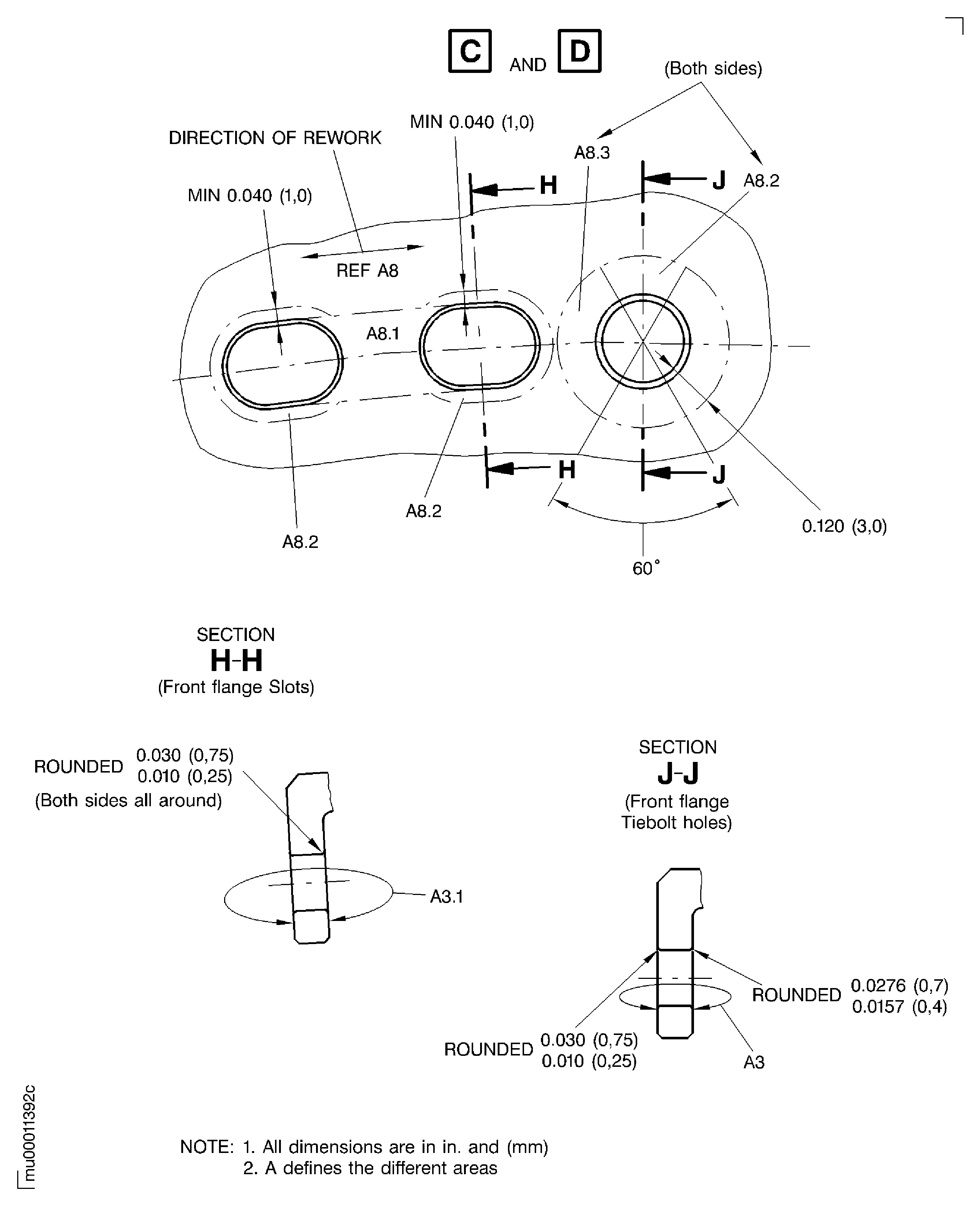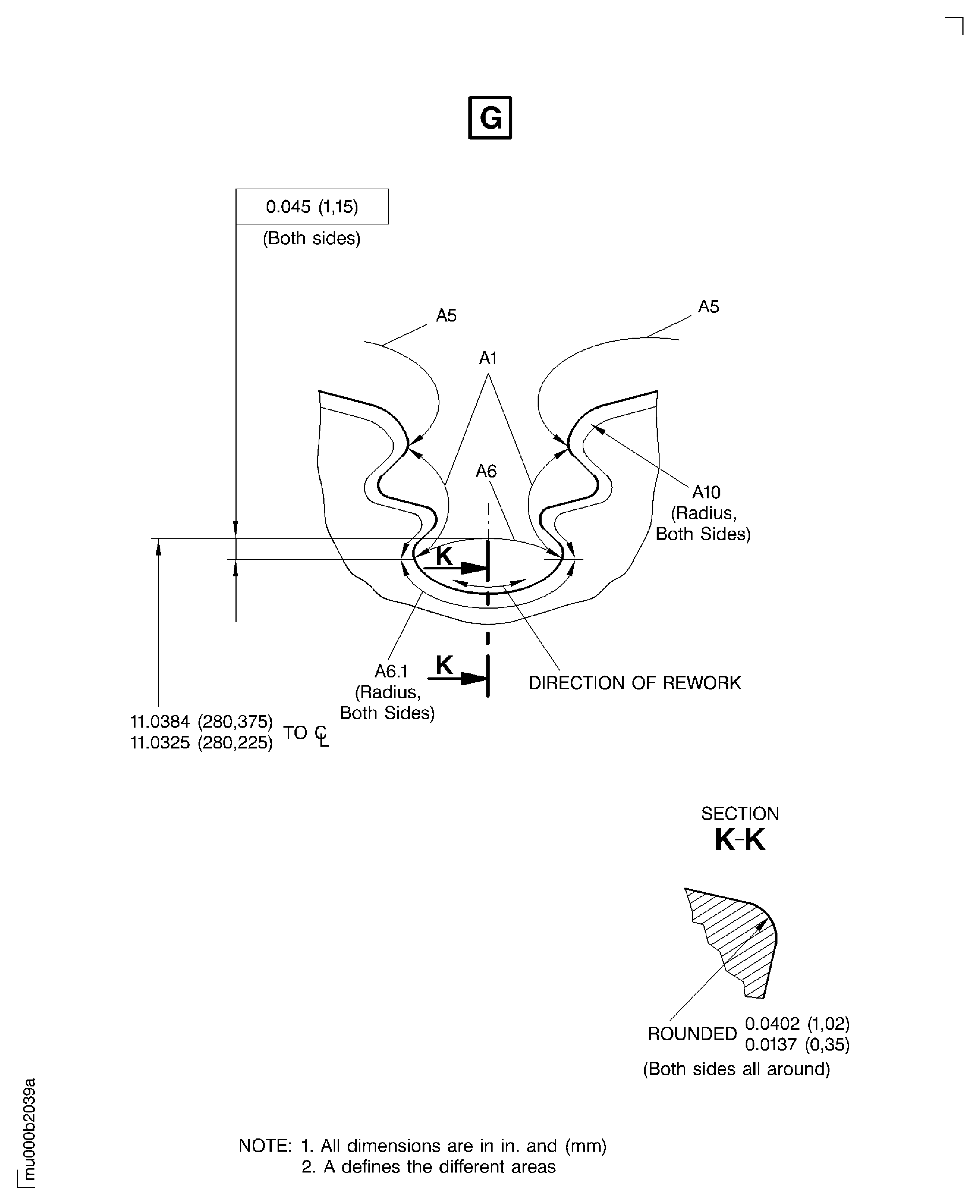 Damage not more than 0.002 in. (0.05 mm) maximum depth to be blended to a 0.003 in. (0.08 mm) maximum depth.