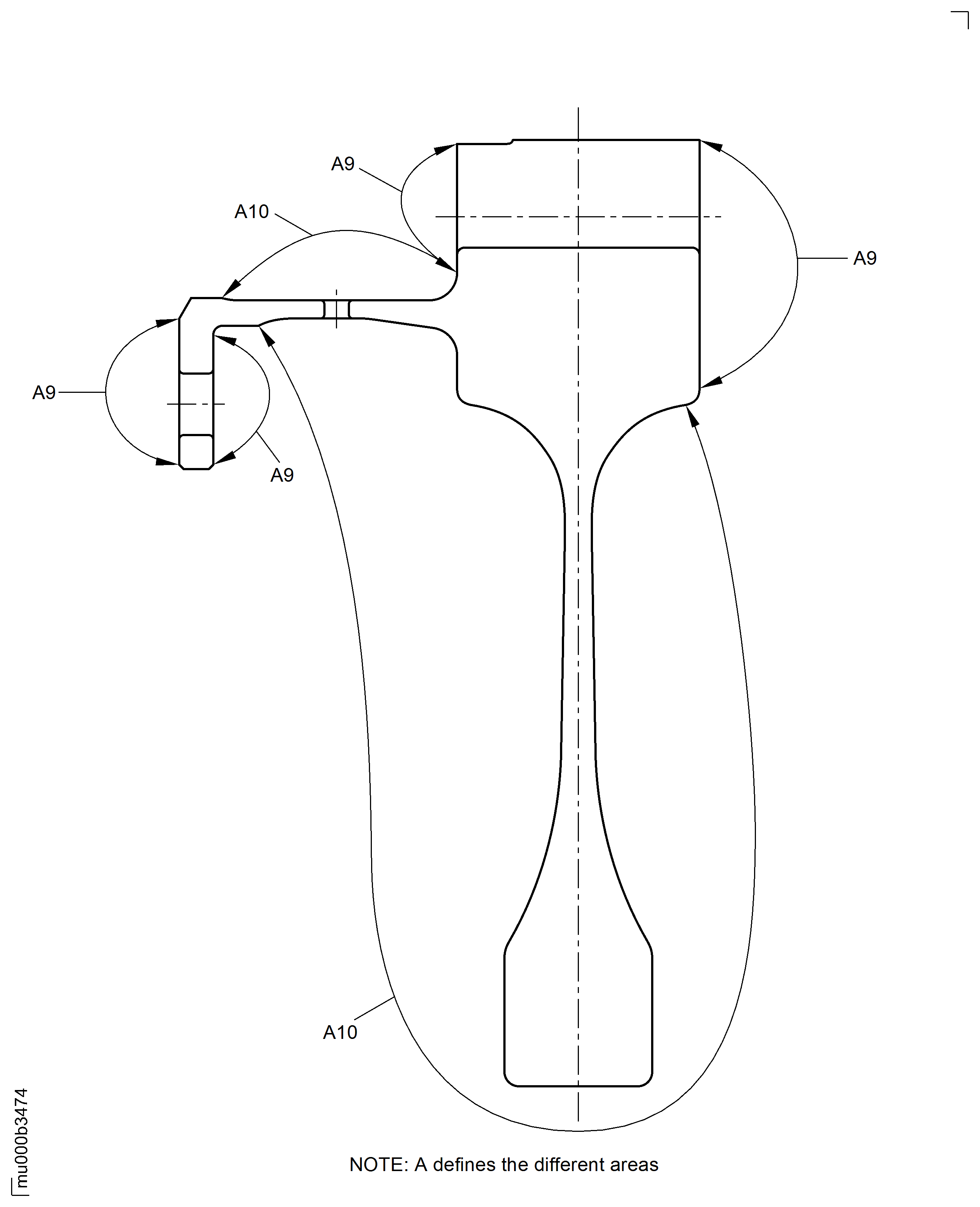 Examine the surface for corrosion pitting in area A9, not in area A7.