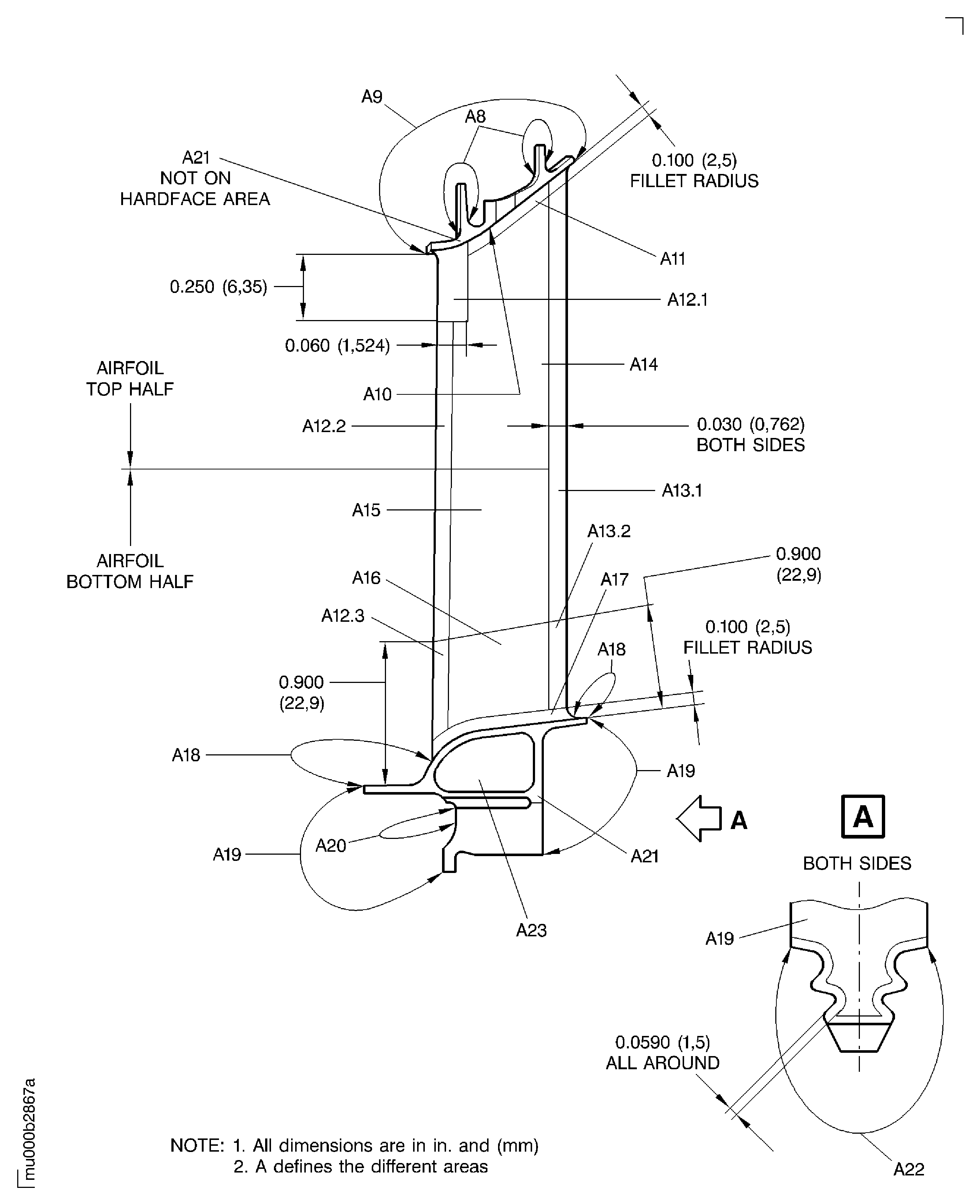SUBTASK 72-50-32-220-355 Examine the Stage 3 Turbine Blade in Area A9 - A23 for Surface Damage