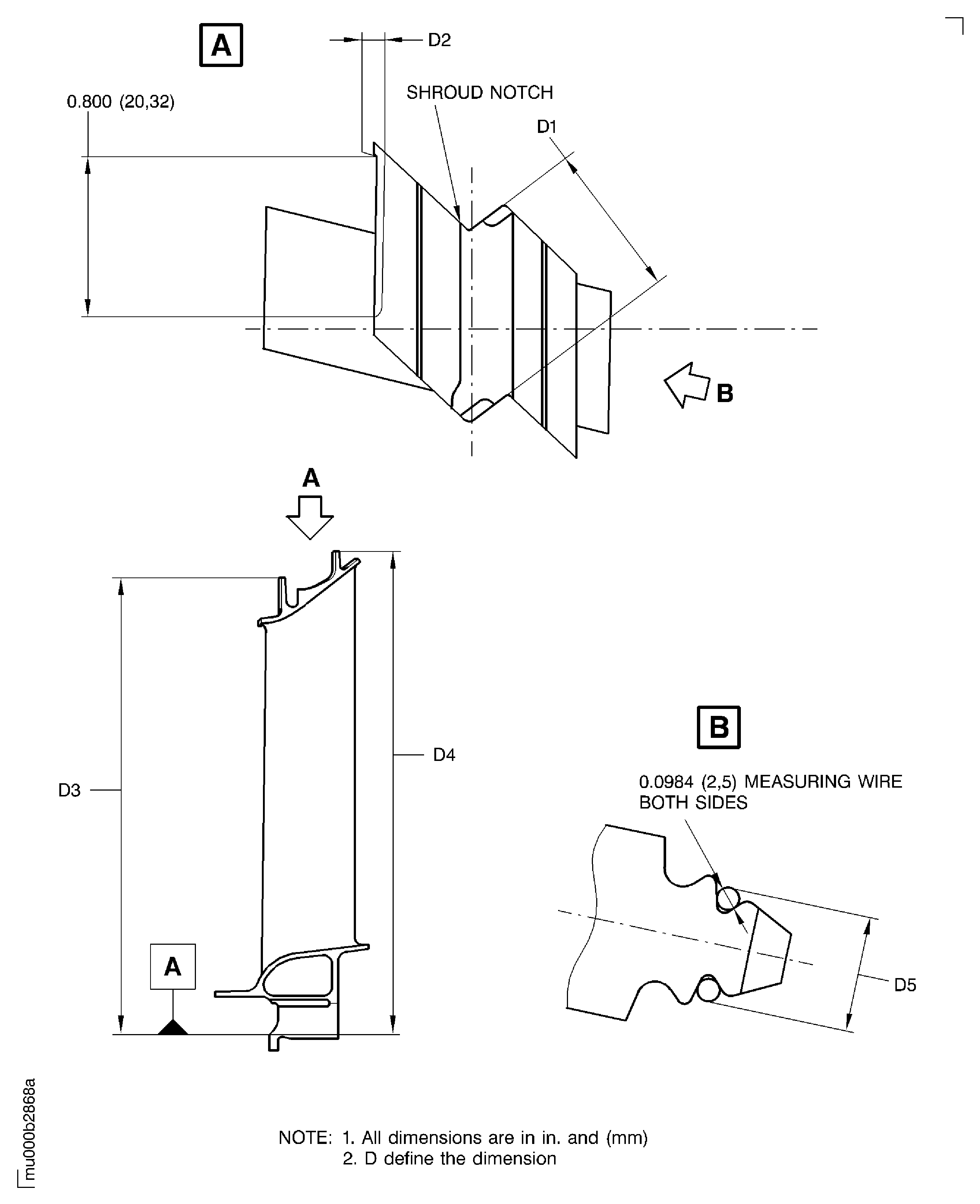 SUBTASK 72-50-32-220-357 Examine the Outer Shroud Dimension D1 of the Turbine Blade