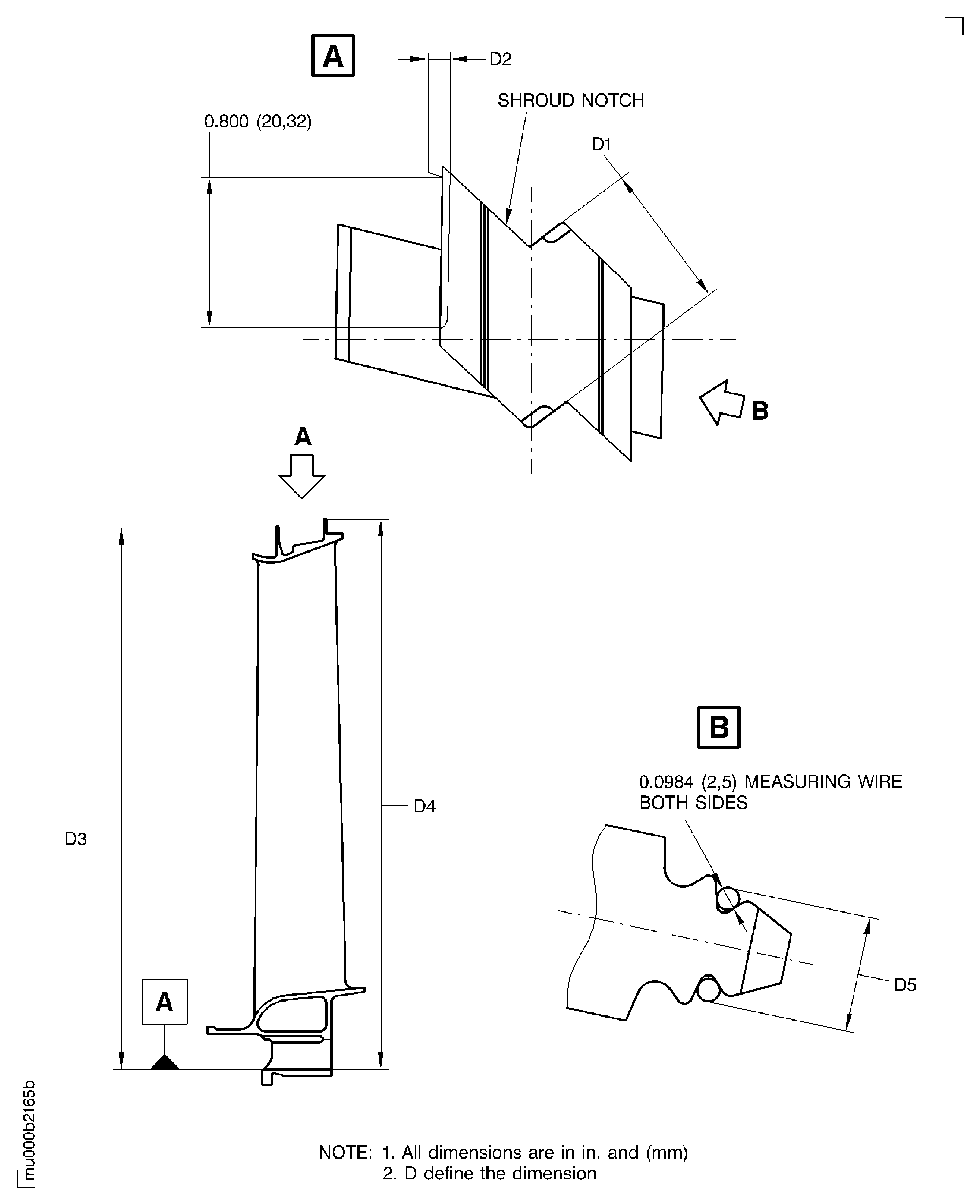SUBTASK 72-50-32-220-115 Examine the Outer Shroud Dimension D1 of the Turbine Blade