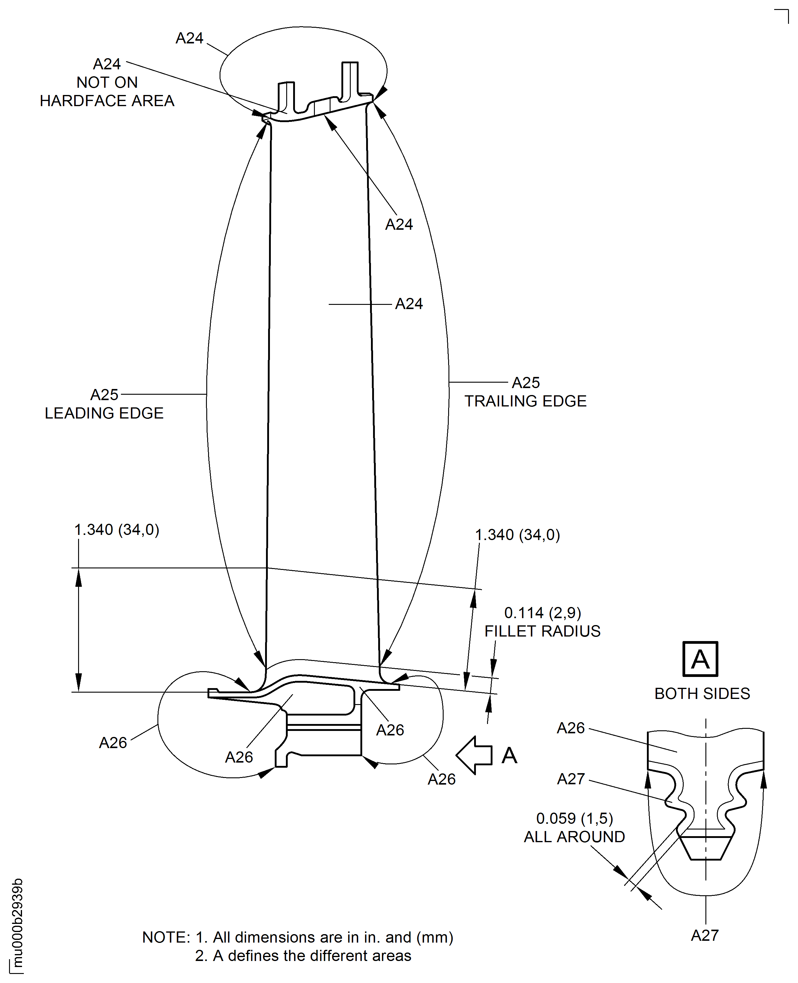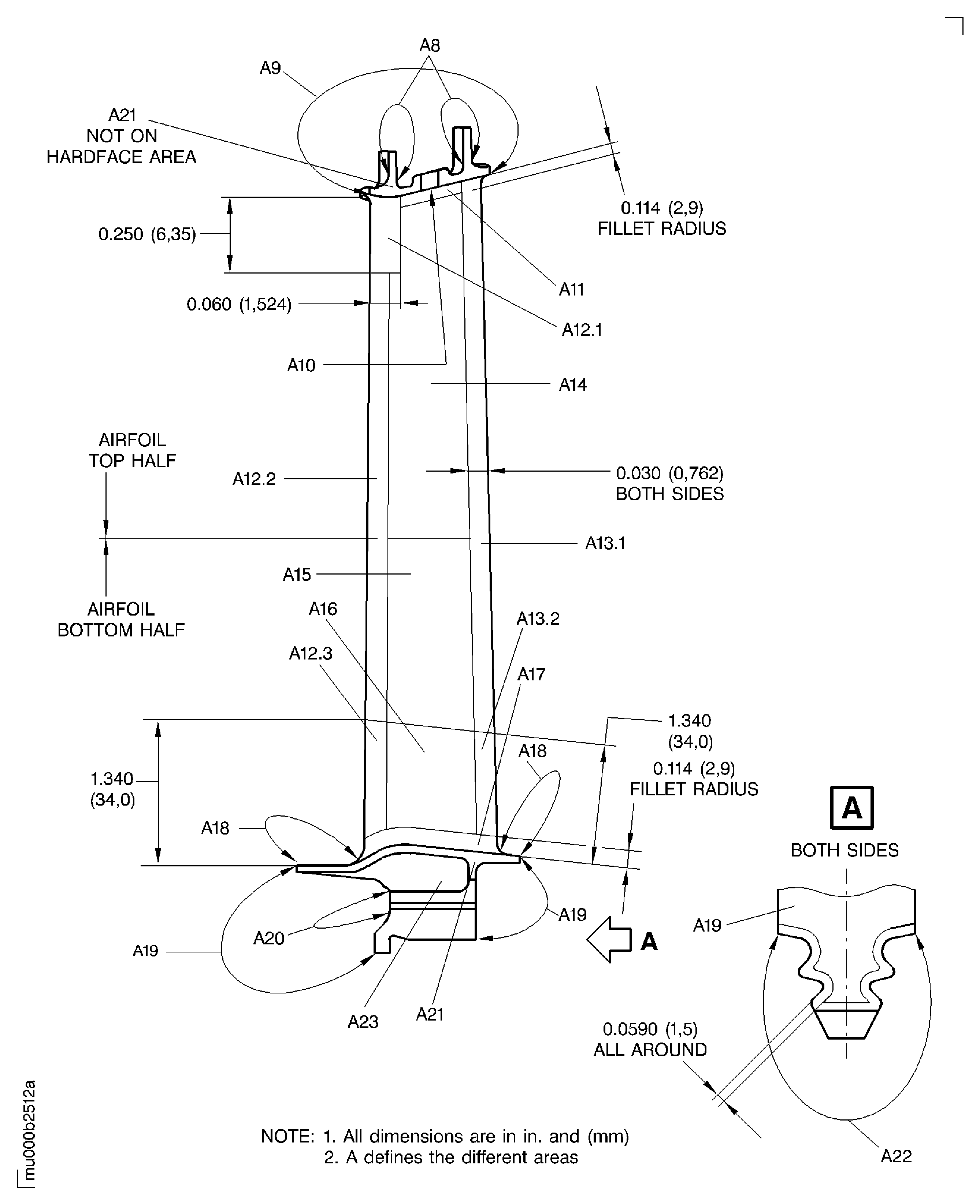 SUBTASK 72-50-32-220-229 Examine the Stage 5 Turbine Blade in Area A9 - A23 for Surface Damage