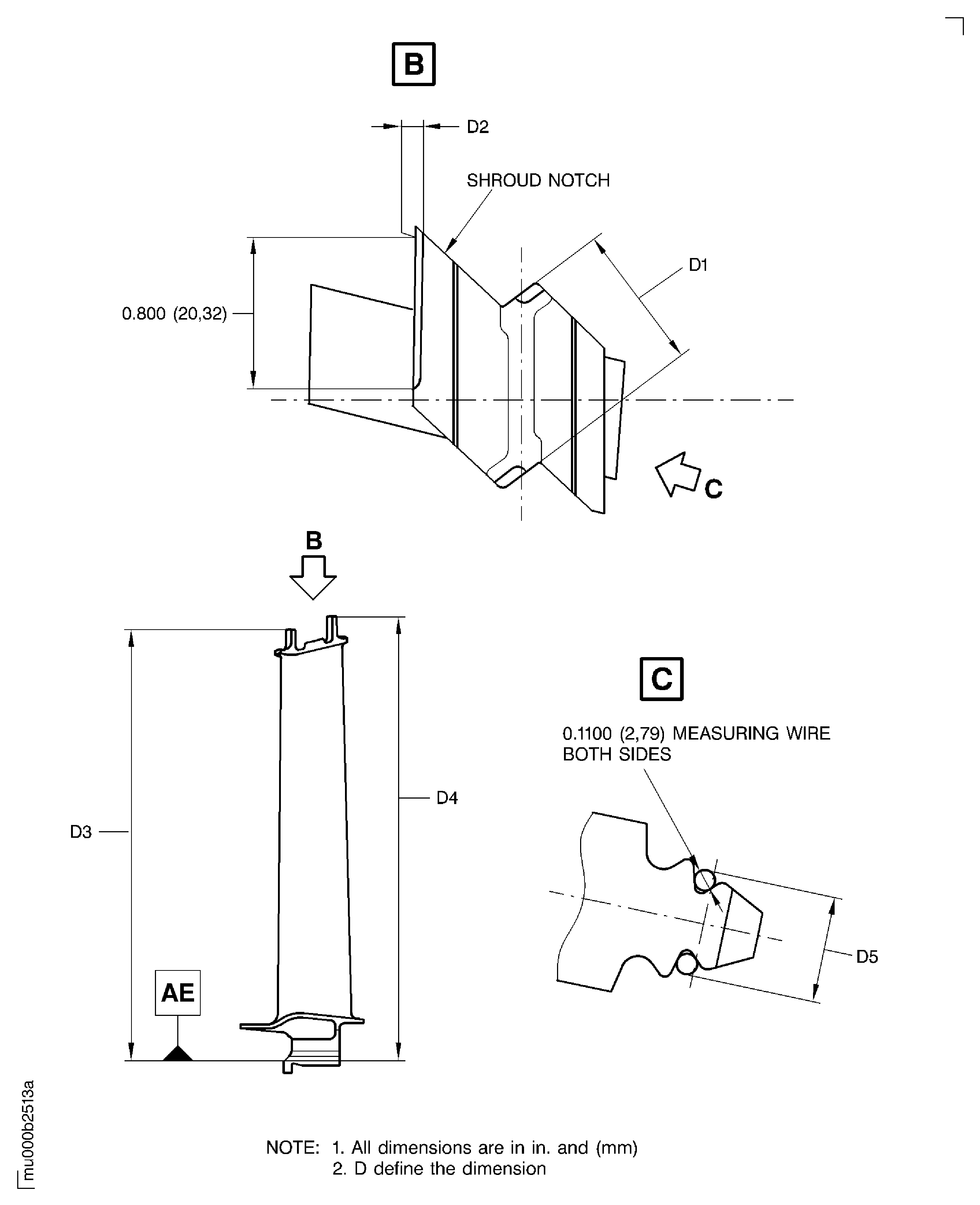SUBTASK 72-50-32-220-230 Examine the Outer Shroud Dimension D1 of the Turbine Blade
