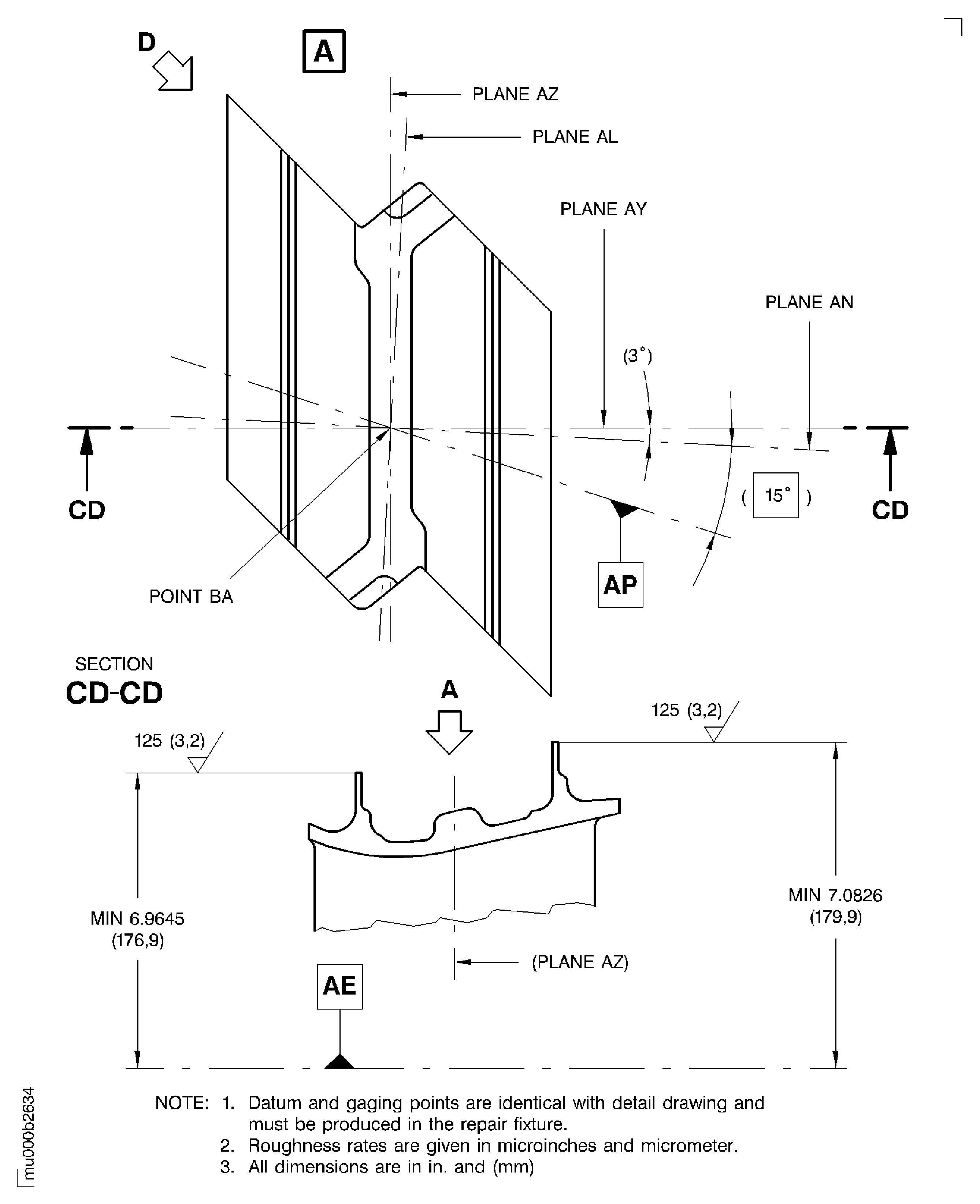 Before you do the repair, write down the turbine blade length dimension, part number, heat code, blade life figure and serial number.