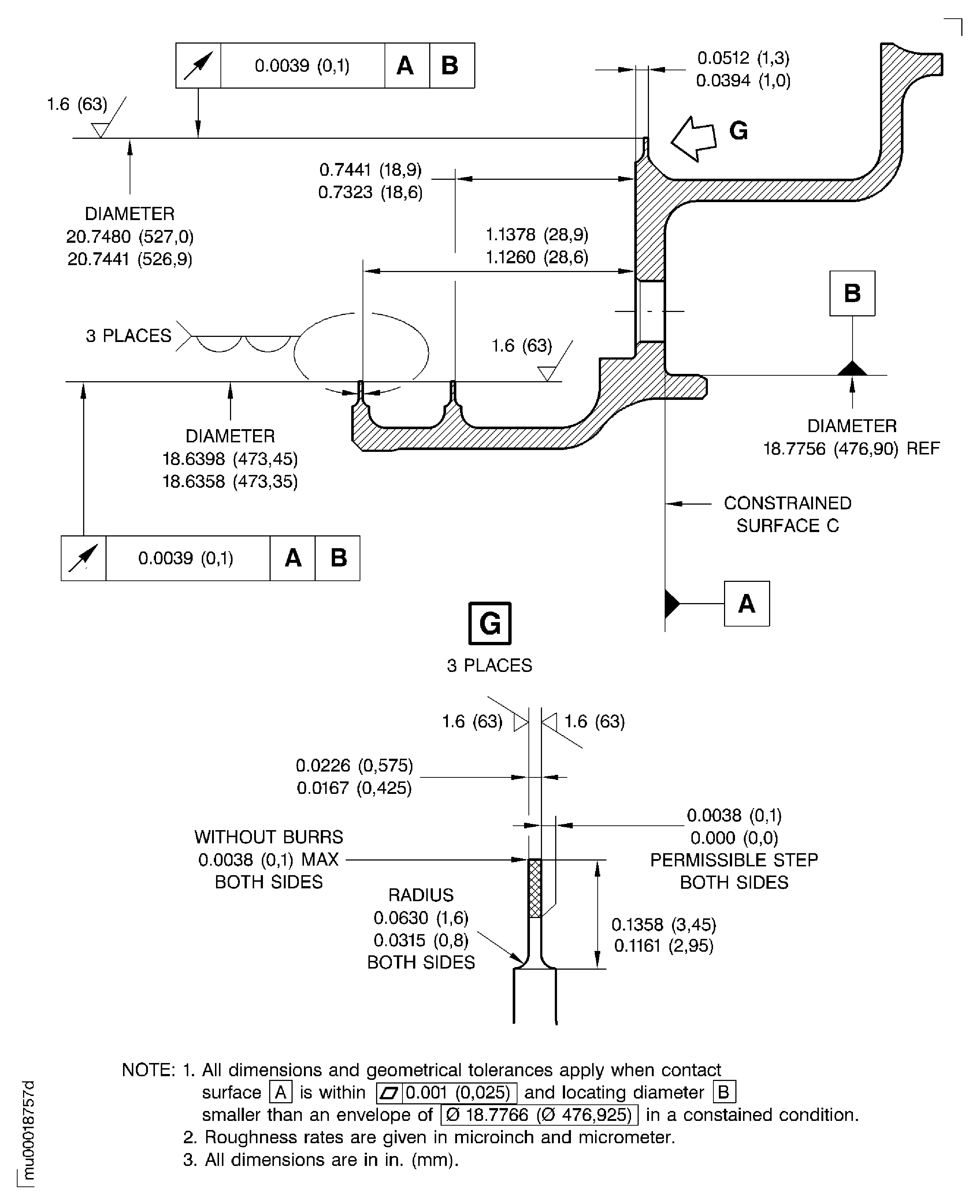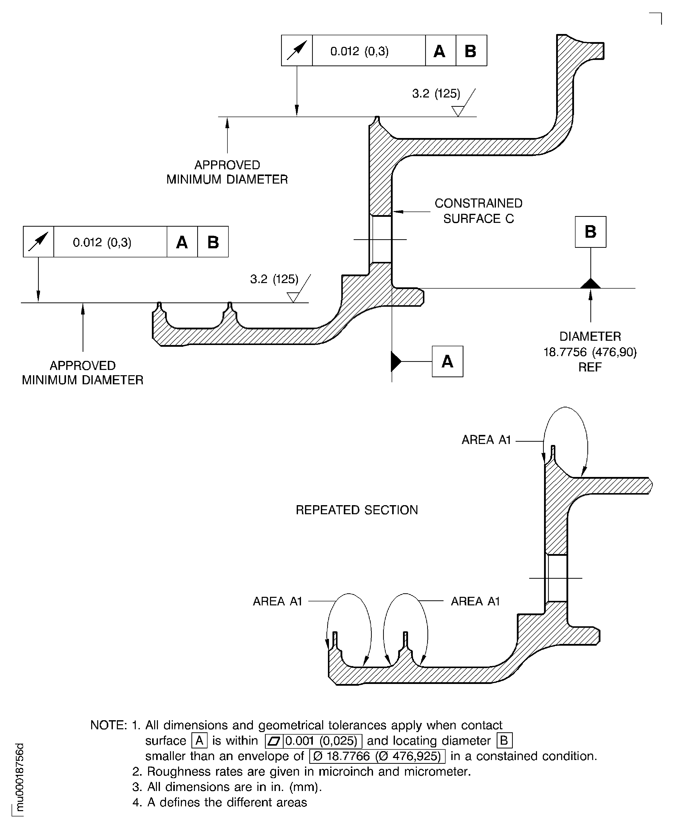 Figure: Dimensions are areas for stage 3 turbine airseal fin weld
