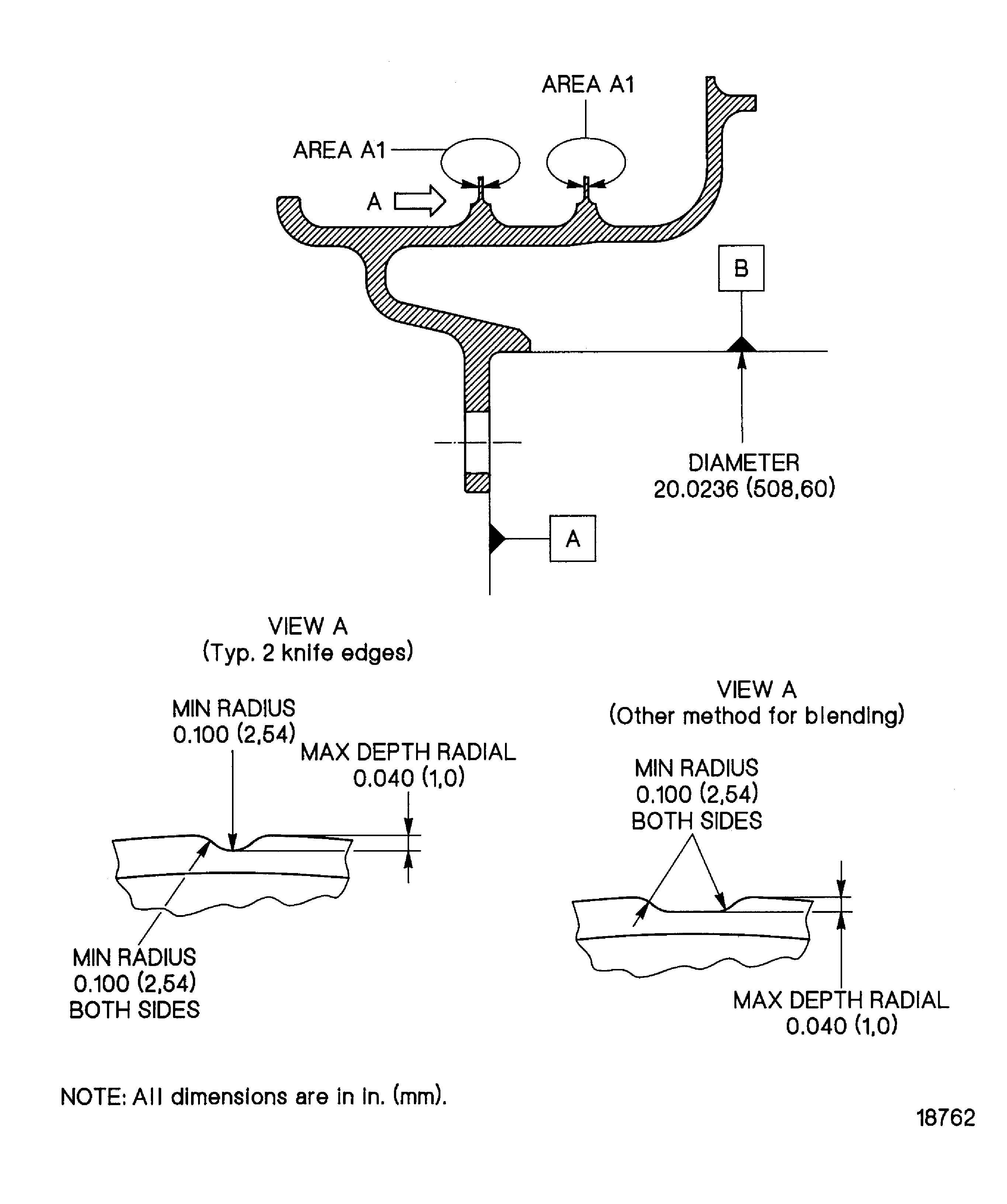 The total area of blends on each knife seal edge must not be more than 0.046 sqin. (30 sqmm) provided the nearest blend on the adjacent knife edge is less than 2.00in. (50.8 mm) away.