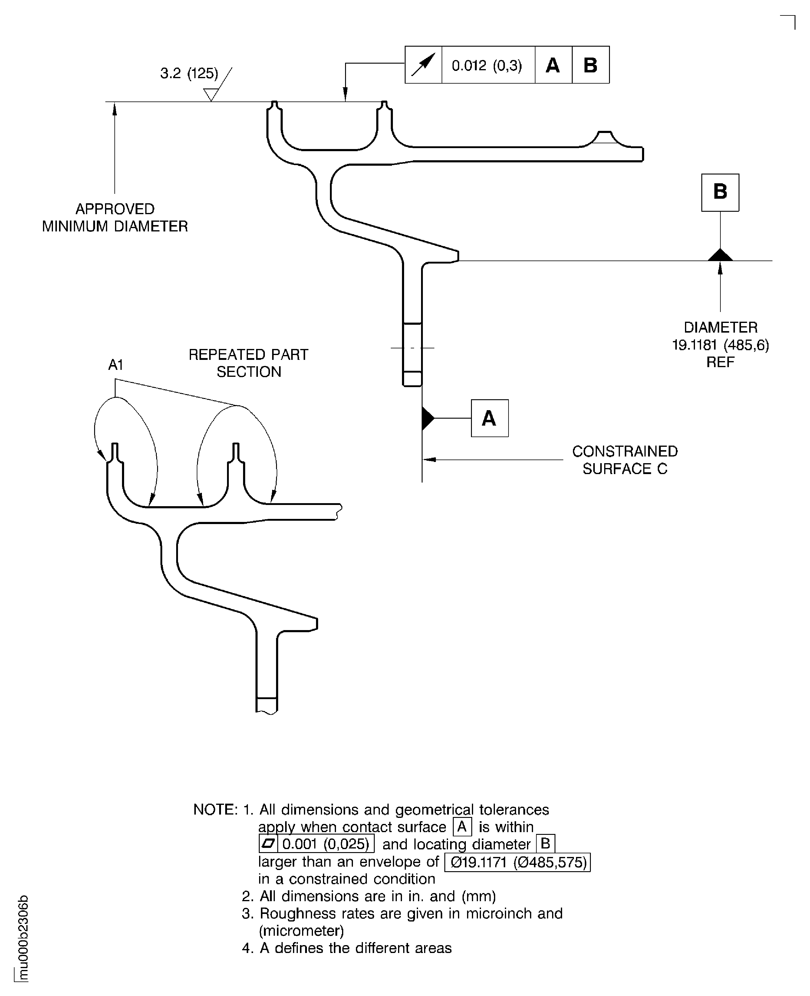 Figure: Dimensions and areas for stage 7 turbine airseal fin weld repair