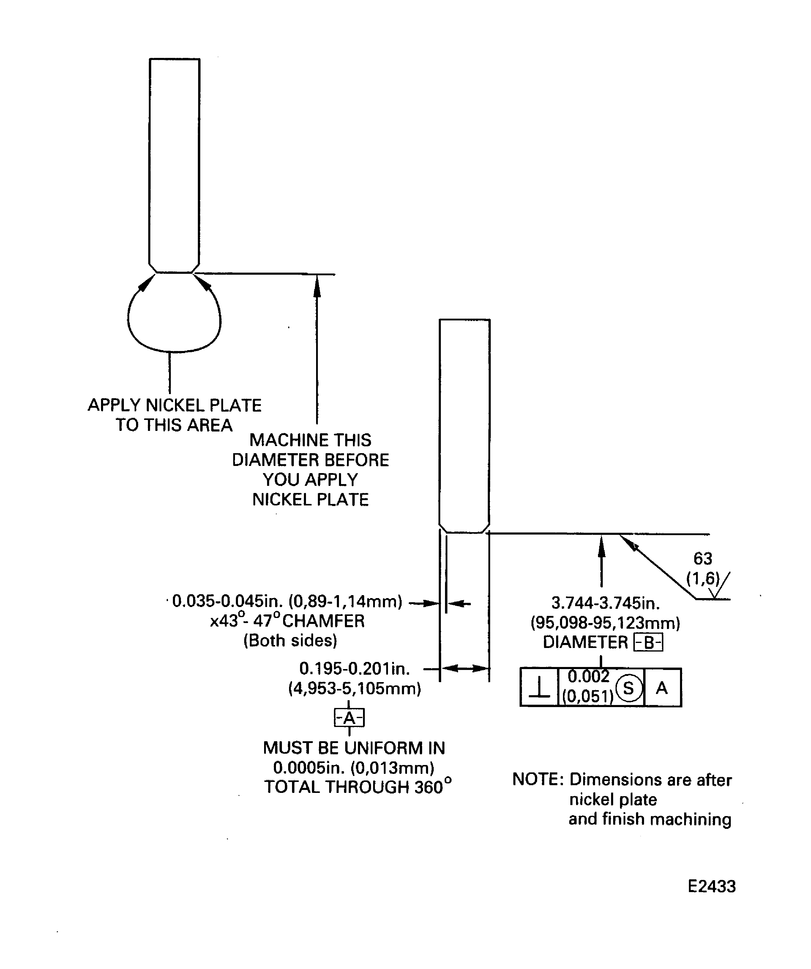 Machine the diameter to permit a minimum plating thickness of 0.002 in. (0.051 mm) after finish machining.