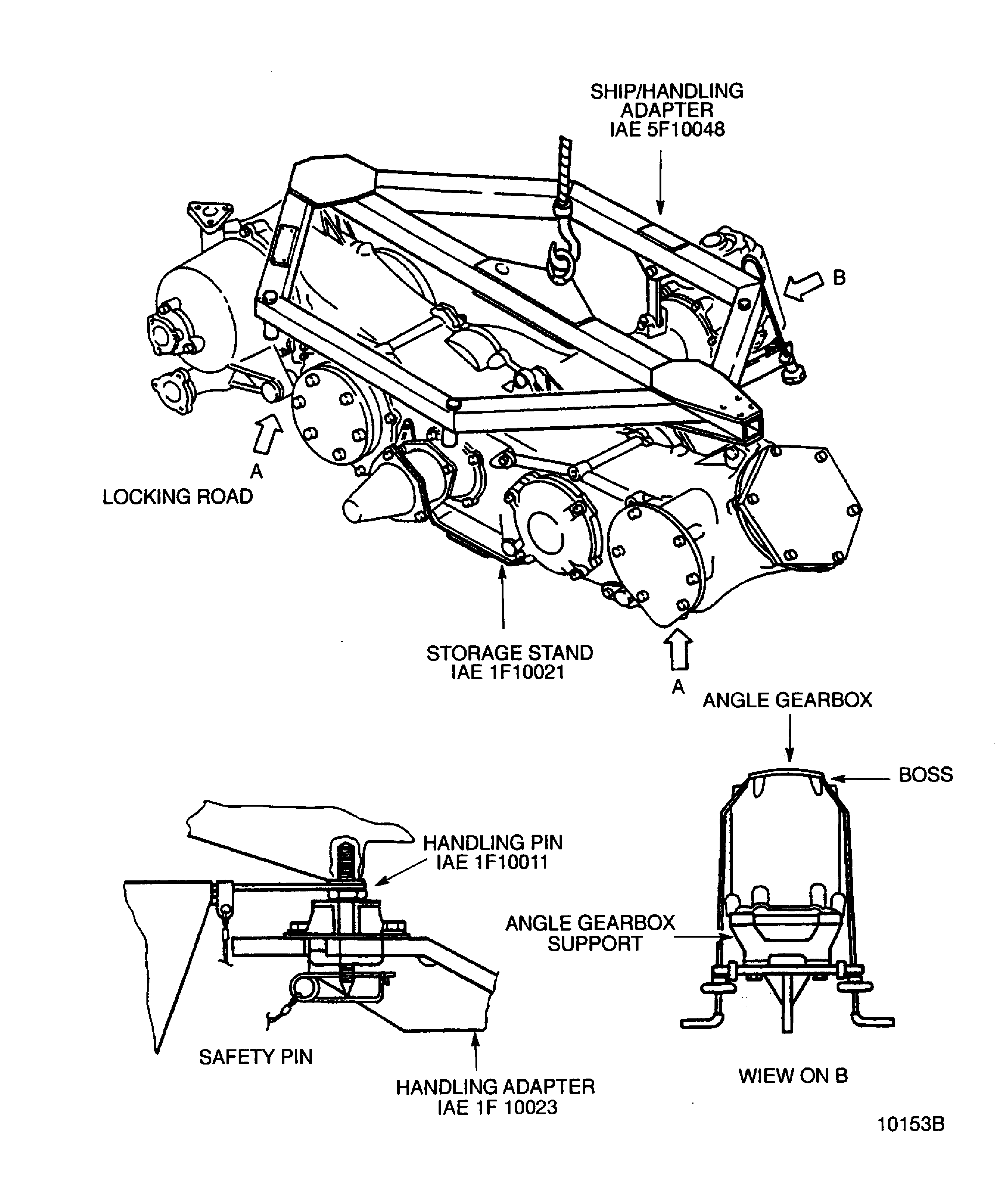 The external gearbox is installed on the IAE 1F10021 Storage stand storage stand with IAE 1F10023 Gearbox adapter G/B adapter and IAE 1F10011 Handling fixture holding fixture. Refer to TASK 72-00-60-020-003-002 if necessary, for the removal of the external gearbox module.Refer to Figure.
