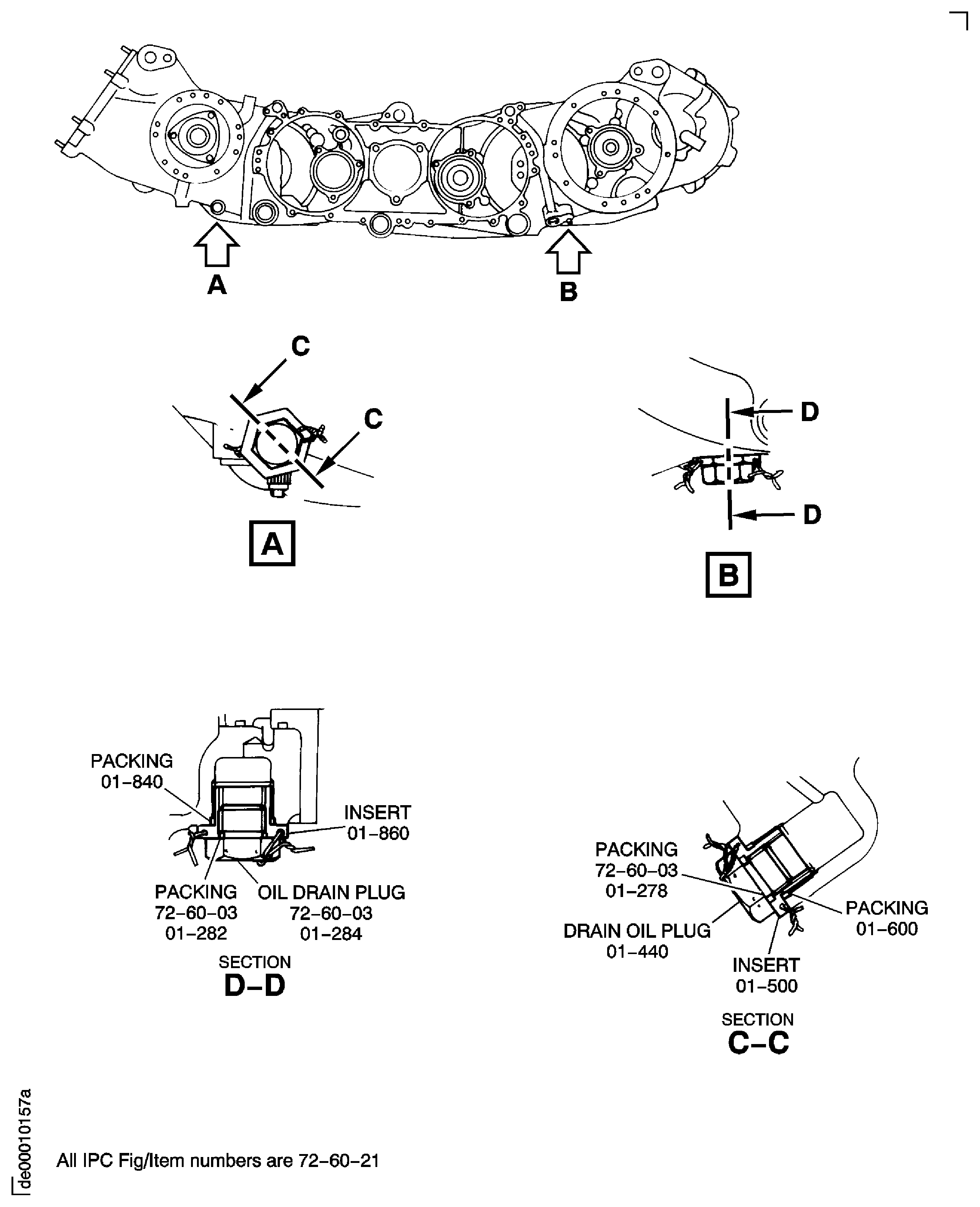 Install Transportation Fittings (72-60-03, 01-278) packing 1 off in to the groove of the oil drain plug. Install the plug in to the insert and torque to 35.403 lbfin to 53.105 lbfin (4 Nm to 6 Nm). Lock with CoMat 02-119 LOCKWIRE.